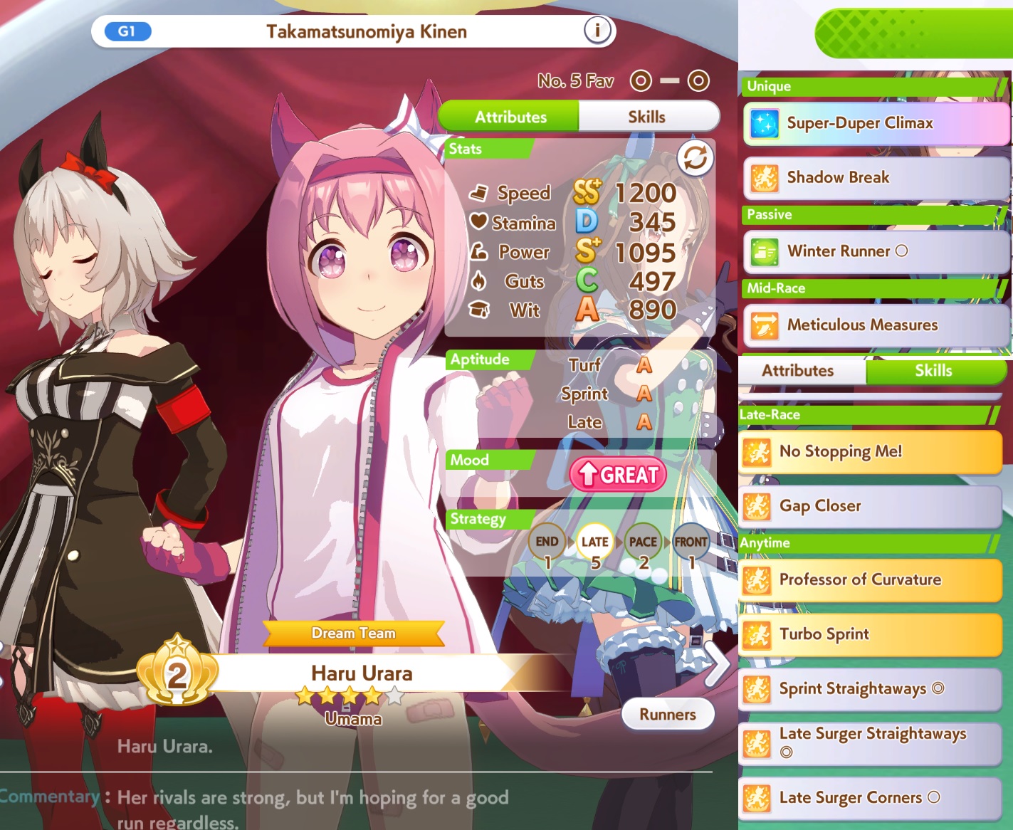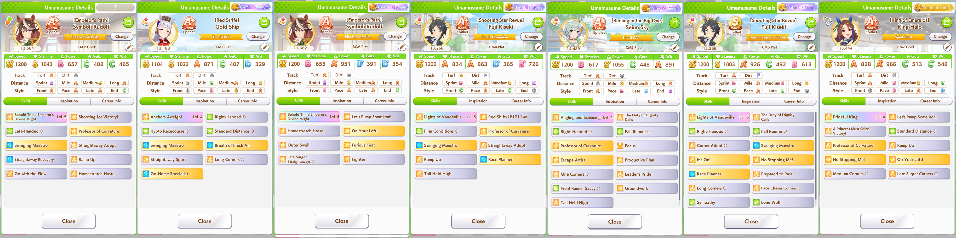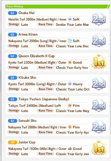 not going to bed before I do my practise races w/ club, clean up my veteran umas a bit
