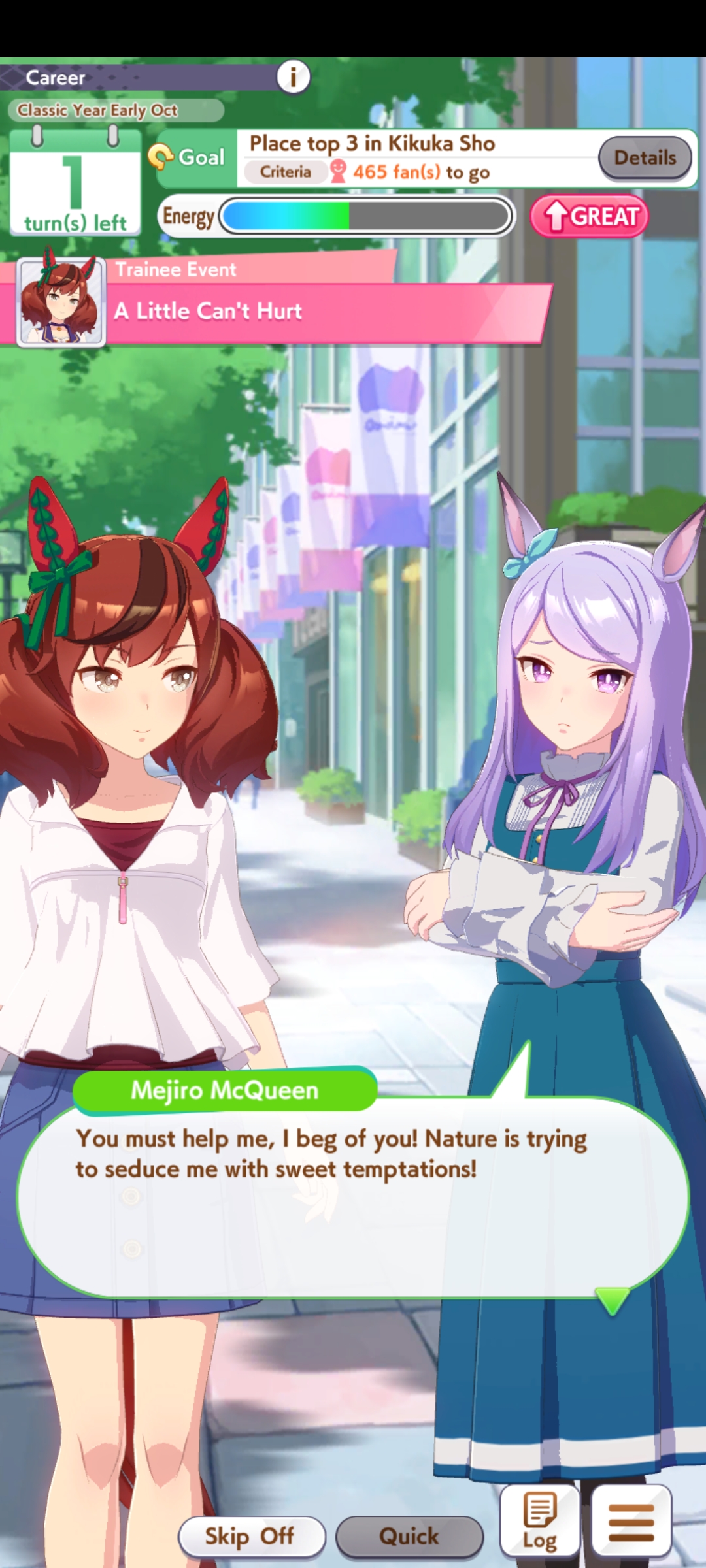 I would but then I'd just lose to Riko at the end because her team's stats were simply higher than mine which could've been avoided if I just simply trained instead of entering an optional race
