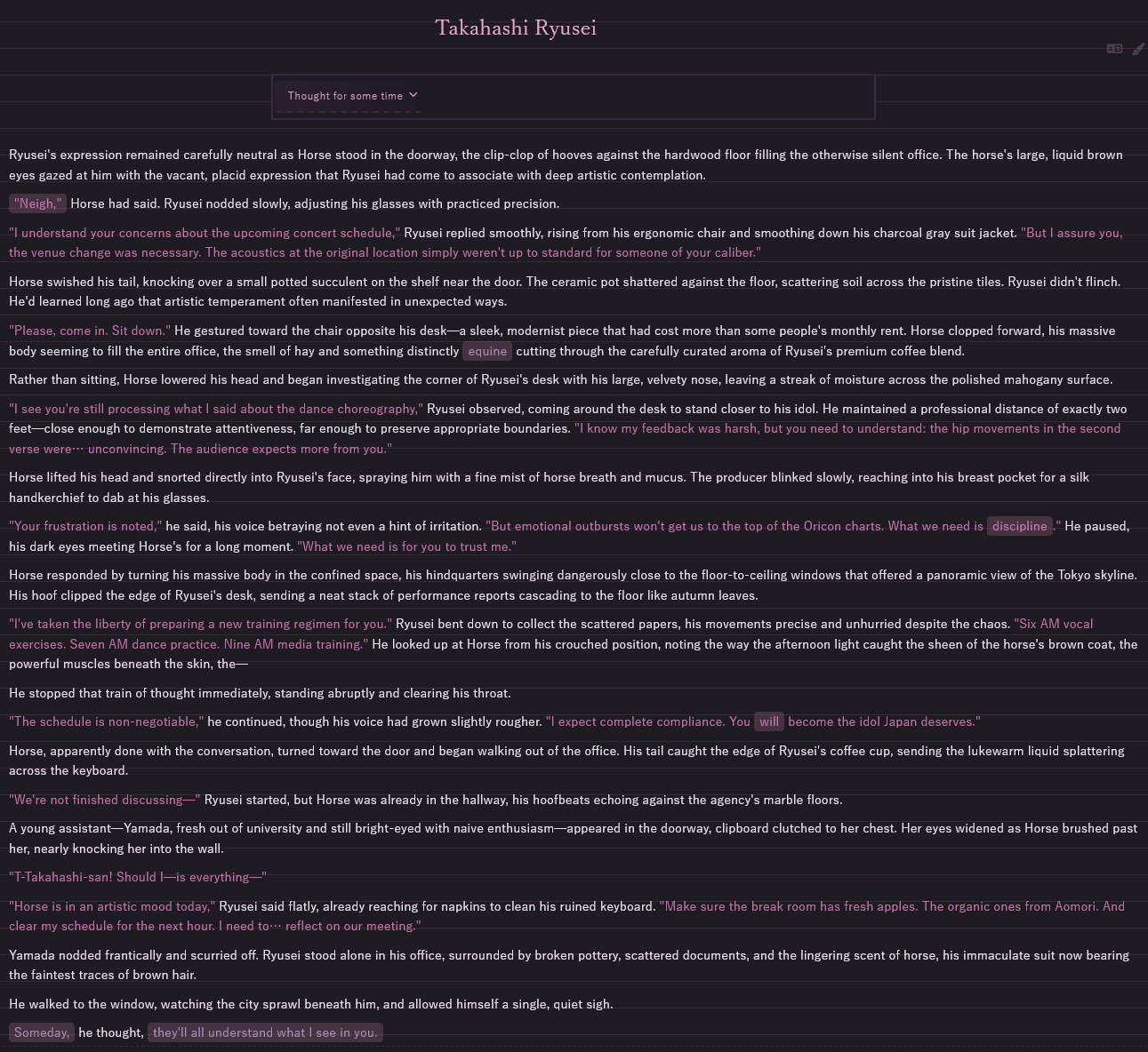 >>553162778>>553162836Finishing up my gens, then I'll start putting down my writing. I'm trying to get something high-quality enough for the avatar.