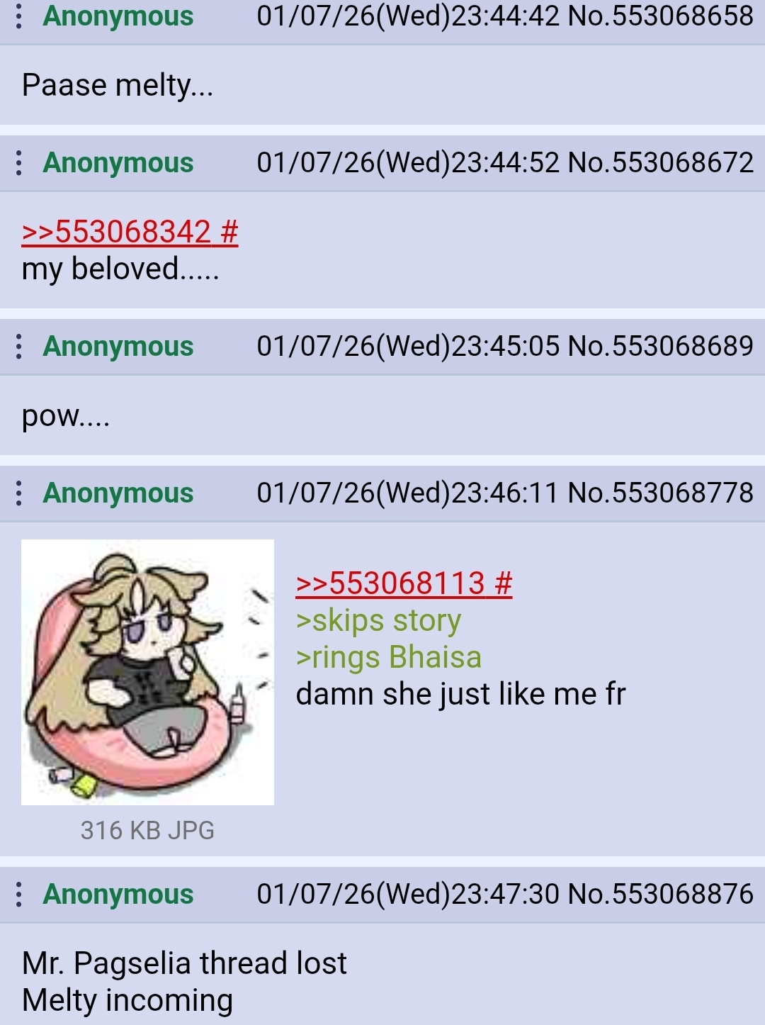>>553070357It'll be real funny if this thread wins after the 'ronger's preemptive gloating, lmao.