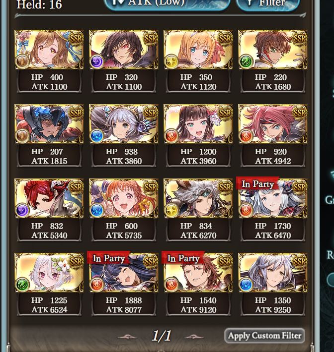 >>553209419I dont know how far in the game you're at or what your Grids and roster looks like, but I'll list a few standouts here:>ChichizakoAn excellent filler character for water ougi teams if you don't have all the top end stuff. You can make a pretty good team with Kengo, Haase, her and any double ougi character like Dog in the last slot.She's also the biggest dickpick here so that's a plus.>RagazzoEvoker sac. While not the most optimal way of getting an Evoker in, he's consistent. May also be important if you need to get a Fire only trophy for HL raids.>LamorakI dont know much about him since I don't play wind, but he's supposedly the cream of the crop for wind auto attack comps. Wind isn't really great at that so I wouldn't go for it unless you have a strong grid.
