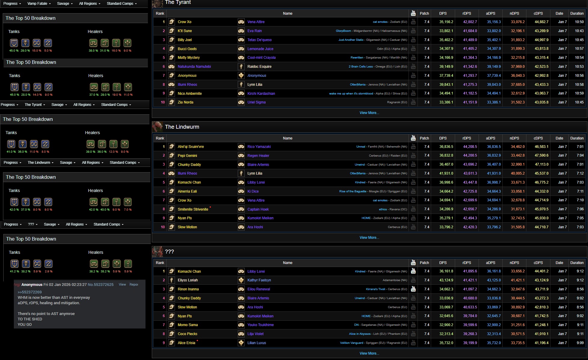 >>553075310>Jobs with raid buffs do better than ones without when they don't have gearshocking now you know why MCH is never used over BRD/DNC early when your power is locked behind a raid buff you don't need gear for itwhen your power is locked behind your own dmg (WHM/SGE/MCH) you need gear to access it