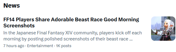 >Patch 7.4https://na.finalfantasyxiv.com/lodestone/topics/detail/06944d892fd98cc00b2a28ff77edbafa4f7eef54>Heavensturn (Dec 31 - Jan 15)https://na.finalfantasyxiv.com/lodestone/special/2026/Heavensturn/xqnas3t3m1>Resourceshttps://rentry.org/xivgresources>Meetups• January 10 | 07:30 PM EST | Primal, Leviathan, Camp Dragonhead | Frontline Meetup >>552723683• January 16 | 07:00 PM EDT | Materia, Sephirot, The Lavender Beds Ward 14, Yainu-Par (Entrance - 10.6, 14.3) >>552575309• January 17 | 06:00 PM EDT | Malboro, Crystal Goblet W13 P26 | Art Meet >>552813983• January 23 | 07:00 PM EDT | Mateus Lavender Beds, W22, P7 | Lalafell Slice of Life Meetup >>552491838• January 25 | 10:00 PM EST | Marilith, Dynamis, Mist W27, P41 | RP workshop & networking meet >>552655494Last Thread: >>553063701