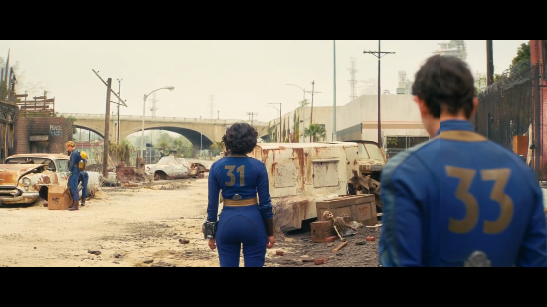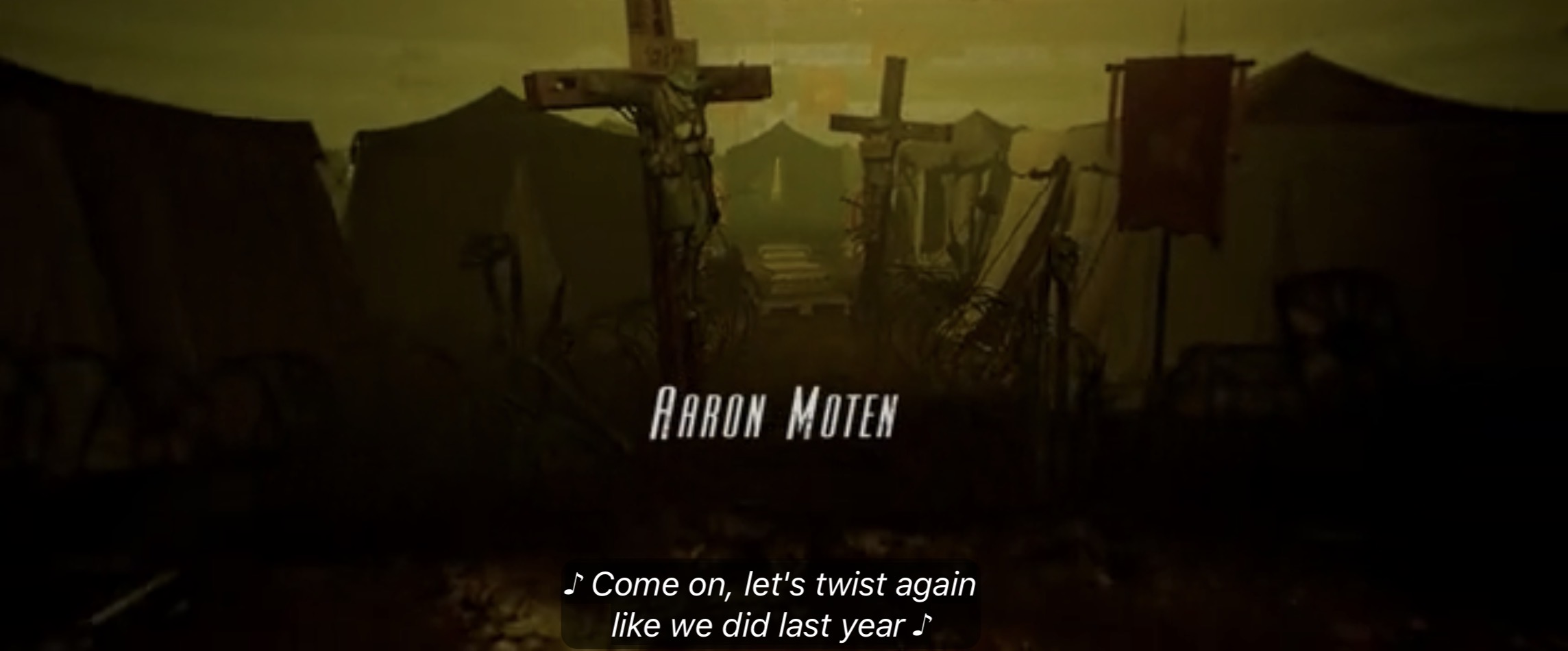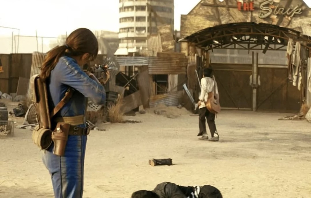 Fuck it, for everything else the show disappoints me with I fucking adore the end credits zoom out vignettes. Those crucified troopers with signs saying “DEMOCRACY FAILED” “CAESAR SAYS HI” is a nice touch. Also a fun shout back to an extremely autistic time in the fandom right after Fallout 3 came out. Back when the nu-fandom still overwhelmingly had faith in Bethesda every comment section and community had hundreds of autistic sequel fanfics they’d write everywhere public imagining the intro to their imagined fallout sequel with a slow zoom-out over a ruin with 50’s music. I like that every episode has one of those. I don’t know. That does make me fondly nostalgic but not in a cheap memberberries way. It’s the one little touch I can actually like. I’m excited to see the rest of the credits sequences at least.