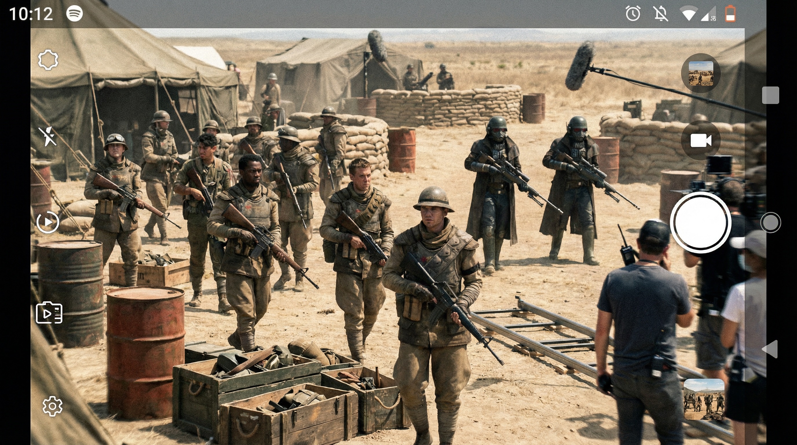 >>553096404>Nearly every interface element has artifacting>Shitton of smearing and blending everywhere>Second boom mic just flying mid-air>Guy's walkie talkie flying mid-air away from his hand>"Previous photo" shots makes zero fucking sense and there are two for some reason>2 settings buttons>3 record buttons (if not more but icons are vague nonsense for the most part)>Taking a phone screenshot of you taking a photo for some fucking reason with a photo interface on top of photo interface???>The costuming actually looks good (the most unrealistic part of this entire image)Do people actually fall for this shit?Please fuck off and kill yourself, AI niggerfaggot. I'm sorry you were born with a shit hued skin but that's not a valid reason to sperg out and shit up the internet.