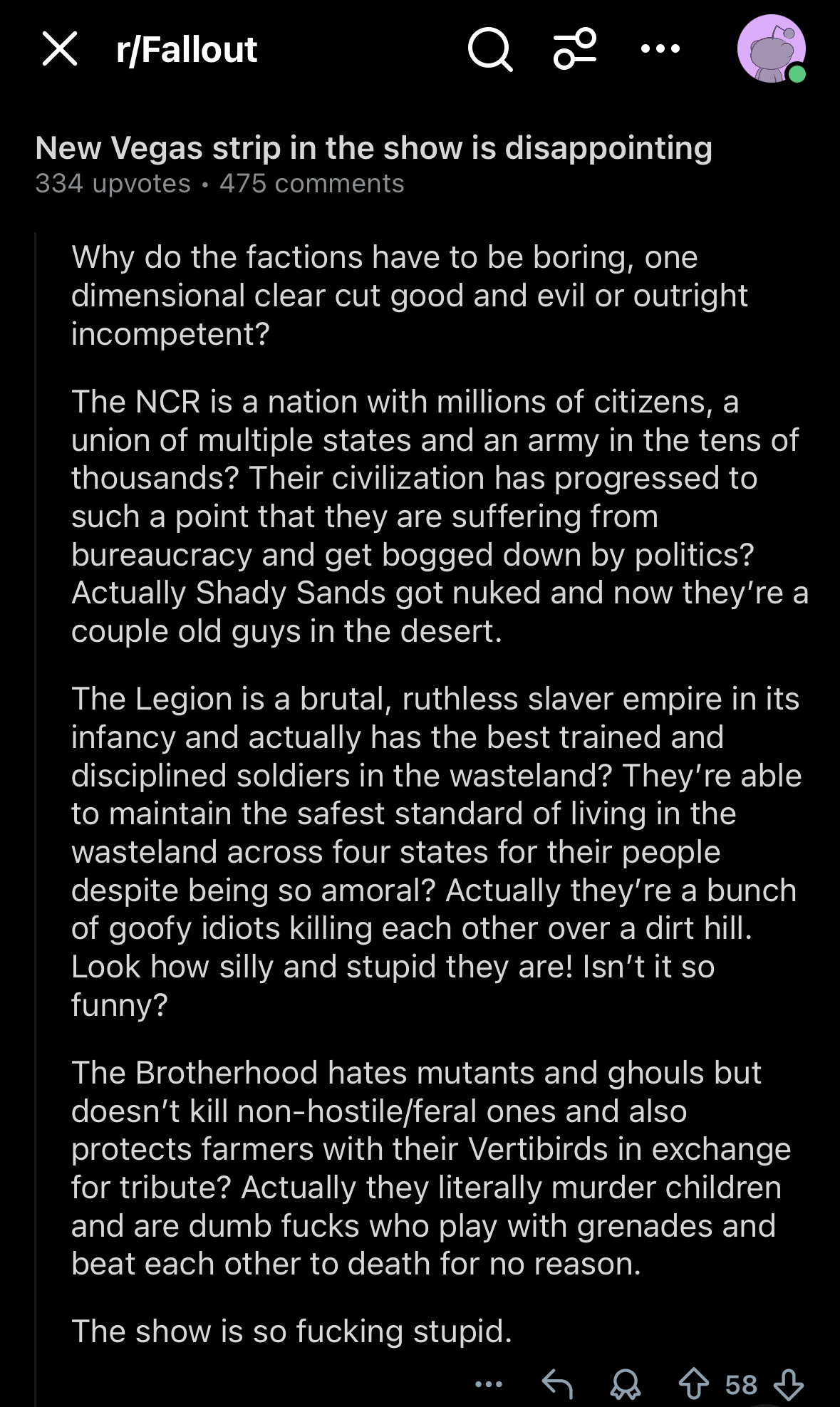 >Fallout show>it's shitJesus didn't die for this…