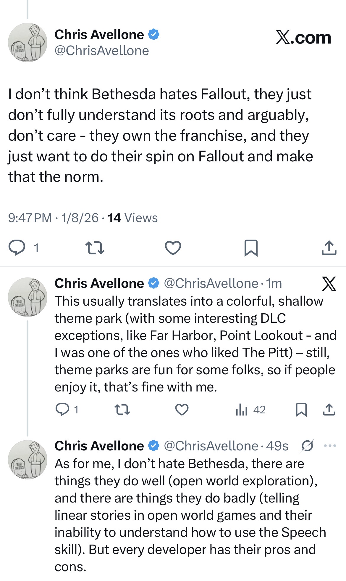 Tim Cain is turning in his grave with how shit the show is.