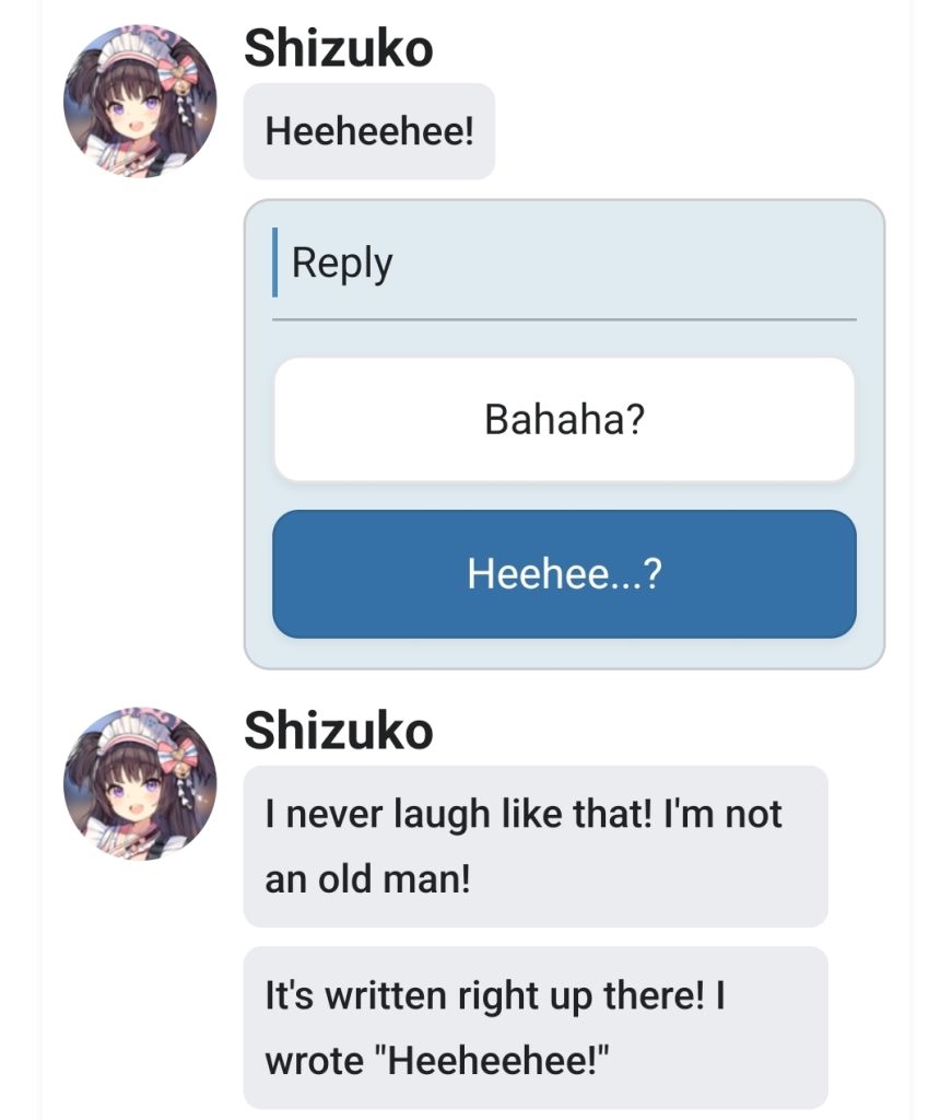 Shizuko laughs like an old man