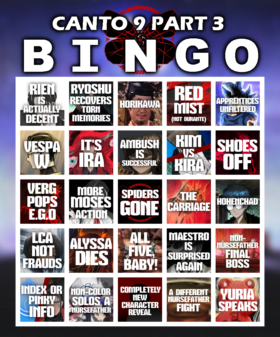 Well, I for one am going all in on Bamboo chad Kim showing up, sure he's mentally broken still but I think finding out your last surviving clan member lost both her fucking arms will force him to take action, if not in this canto he'll show up in an intervallo afterwards.
