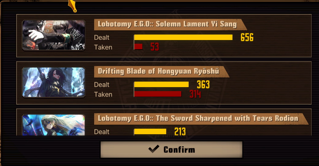 >140 rolls for Donah>carmen in her UT story>if Verg is the 13th, that might explain why he jobs a bit. He got nerfed too. Gonna be hilarious when he dies and Dante can revive him.Also what the fuck am I meant to be using the new EGOs on. Outis' is Bleed yeah, but also like half Envy. And Heath doesn't have a charge-burn ID.