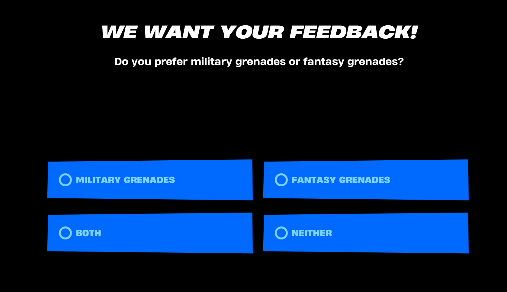 i actually think a fuck you i win item would be kino as fuck but until it's in game it's probably gonna shrink the storm pretty slow and leave it at a spot with ground, at least in ZB