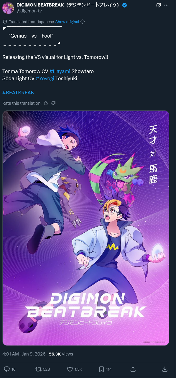 Chicchimon EditionPrevious: >>552732634>NEW TO THE DIGIMON FRANCHISE? HERE'S A STARTER GUIDEhttps://imgur.com/a/5uGdx0lGAME NEWS>Time Stranger is out now!>Alternate Dimension DLC Pack 1: Available Now!>GAKU-RAN DLC Pack 2: January 2026>DragonRod's Digital Tamer Reborn 2https://dragonrod342.itch.io/digital-tamers-2>Digital Monster: Net Driverhttps://kuhamaven.itch.io/dm-net-driver>Other recent games:Digimon Story Time Stranger, Digimon Survive, Digimon World Next Order (PC & Switch Port)>Upcoming games:Digimon Alysion>Lost Evolution translation patch finally releasedhttps://pastebin.com/ddh1C8LMANIME NEWS>Digimon Beatbreak official websitehttps://www.toei-anim.co.jp/tv/digimon_beatbreak/>New Tactics arc detailshttps://withthewill.net/threads/35267>Episode 13 subshttps://nyaa.si/view/2060322LIBERATOR NEWS>Comic Chapters & Web Novel Chaptershttps://digimoncard.com/digimon_liberator/en/comic/https://digimoncard.com/digimon_liberator/en/novel/>Official websitehttps://digimoncard.com/digimon_liberator/>Official JP themehttps://www.youtube.com/watch?v=YkmPTtp9D_o>Liberator synopsis and character detailshttps://withthewill.net/threads/30615https://digimoncard.com/digimon_liberator/en/character/>Liberator initial announcementhttps://withthewill.net/threads/30489CARD GAME NEWS>Current /tg/ /dcg/ thread>>>/tg/97320851MANGA NEWS>Digimon Dreamers online distribution updatehttps://withthewill.net/threads/30849>EN Reference Bookhttps://digimon.net/reference_en/>Line Buildershttps://digimon-lines.com/buildhttps://furudbat.github.io/digimon-partner-kit/[RESOURCES PASTEBIN [UPDATED WITH CS MOD DETAILS!]https://pastebin.com/LuTfCHDs