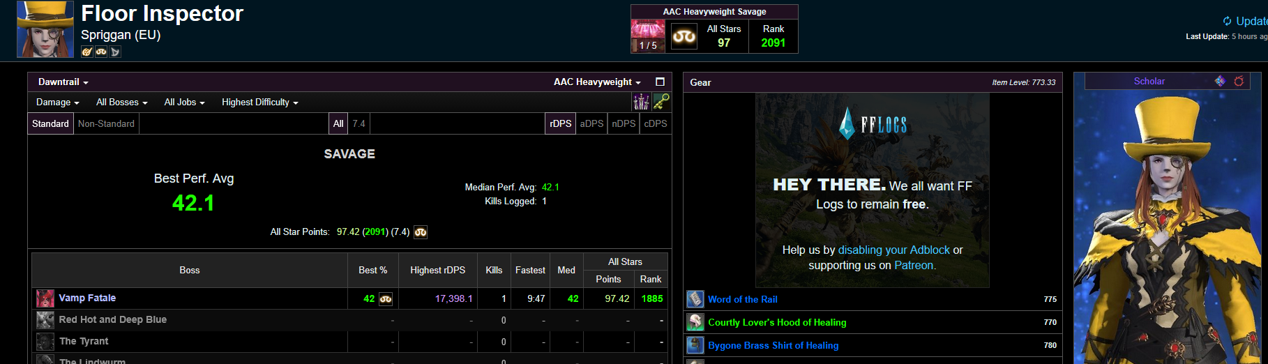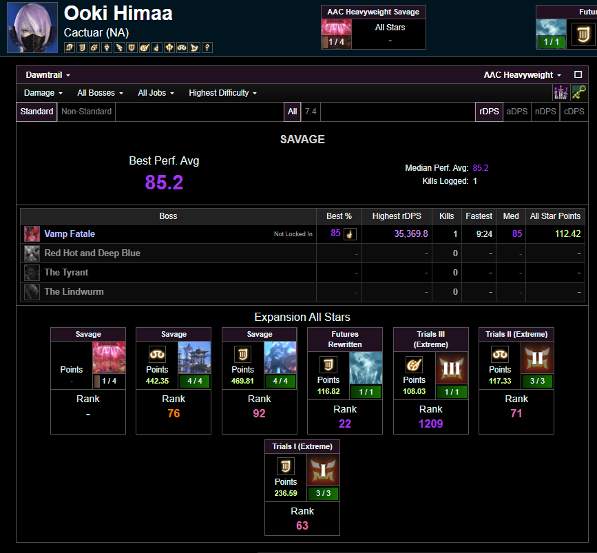 me femra will turn her fflogs and tomestone private and prog lie, fuck it
