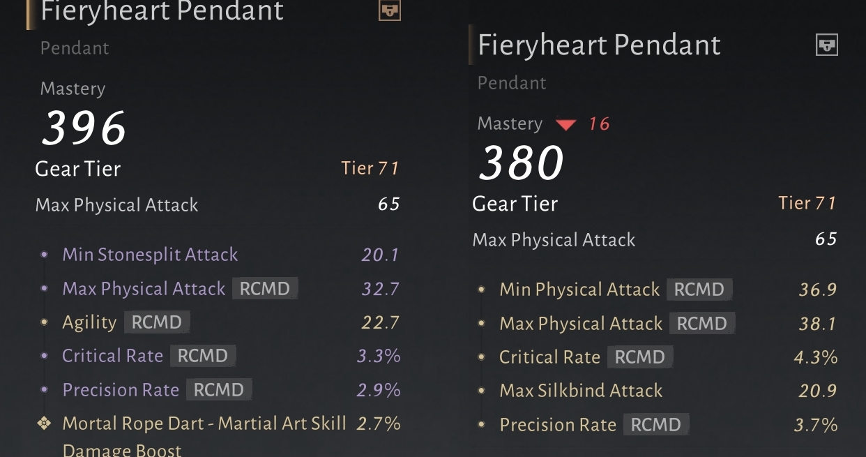 >>553199024Nah they're ok, the problem is I've just gotten 5 of them as my last 800+ energy. Left is the one I'm using, right is one I just rolled. But the one with all golds is still worse than the other one with mostly purples because it has more crit, and I don't want to waste a million shells on more pendants