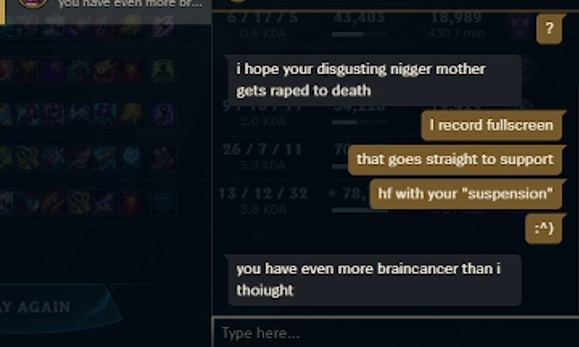 >play udyr (default skin ofcourse)>run enchanters down with my awakened E so they can't cc lock me>this pisses everyone off>get called an incel,chopped chud every time this happensit makes me smile knowing i am making w*men seethe by raping them through the screenonce i catch up with my R they are just slow walking and seethingit brings me joy when i can torment people :3