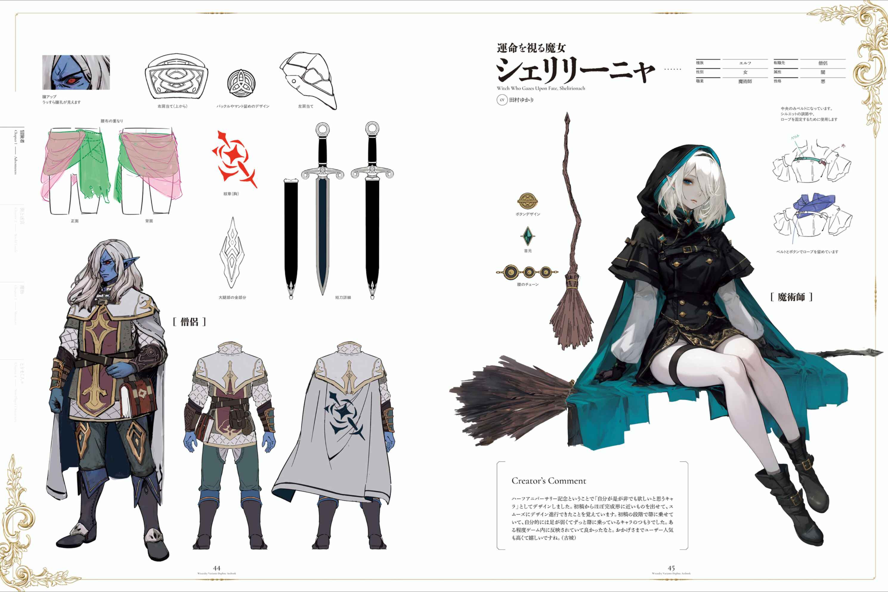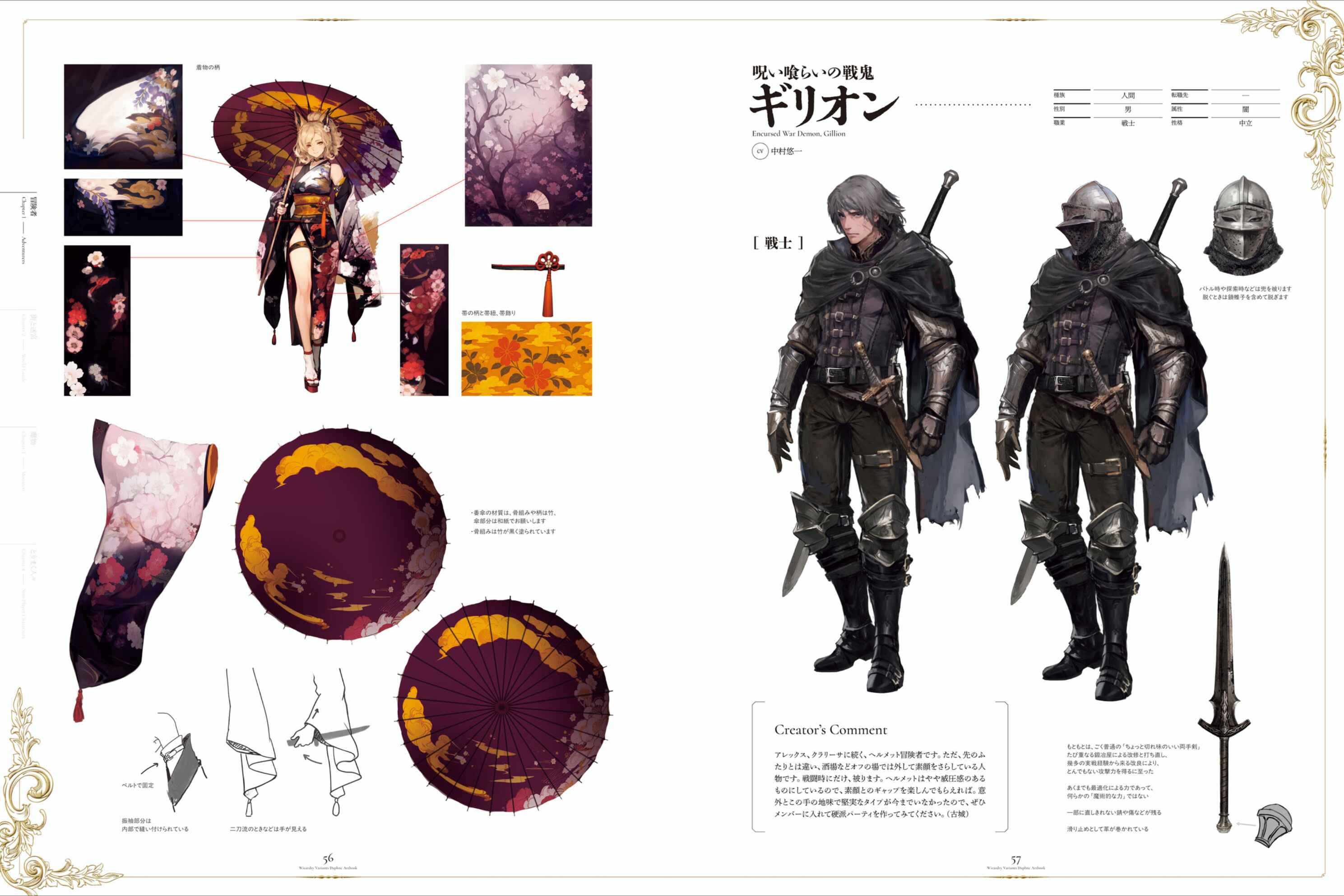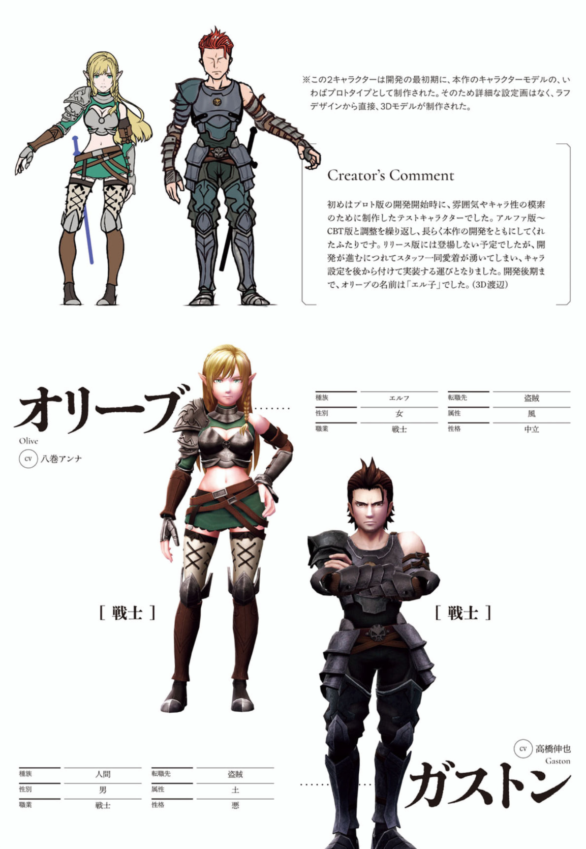 Link to artbook from last thread.>>553123527Also, following on from Lulunarde last thread, I'm going to post some more translated creator's notes from the book, starting with the Legendary adventurers. These will all be machine translated but I think they are passable translations.>>553129930First up is Adam, with some additional notes for his post quest version and his alt:"As he is a character who looks down on other races somewhat, I tried to express his inflexible stubbornness in his facial expression. The first draft had a relatively simple design, but it felt like it lacked the sense of superiority that a legendary adventurer should have. By adding a cloak, making the clothing multi-layered, and adding decorations, I think I was able to create a design that stands out from ordinary adventurers. The change in hair color after the special quest was one of my favorites, but simple black hair is also good... The style change design is set to be released in June, and the theme is "a handsome man dripping with water," inspired by the rainy season. It's an aristocratic image, staying indoors and unable to go out."
