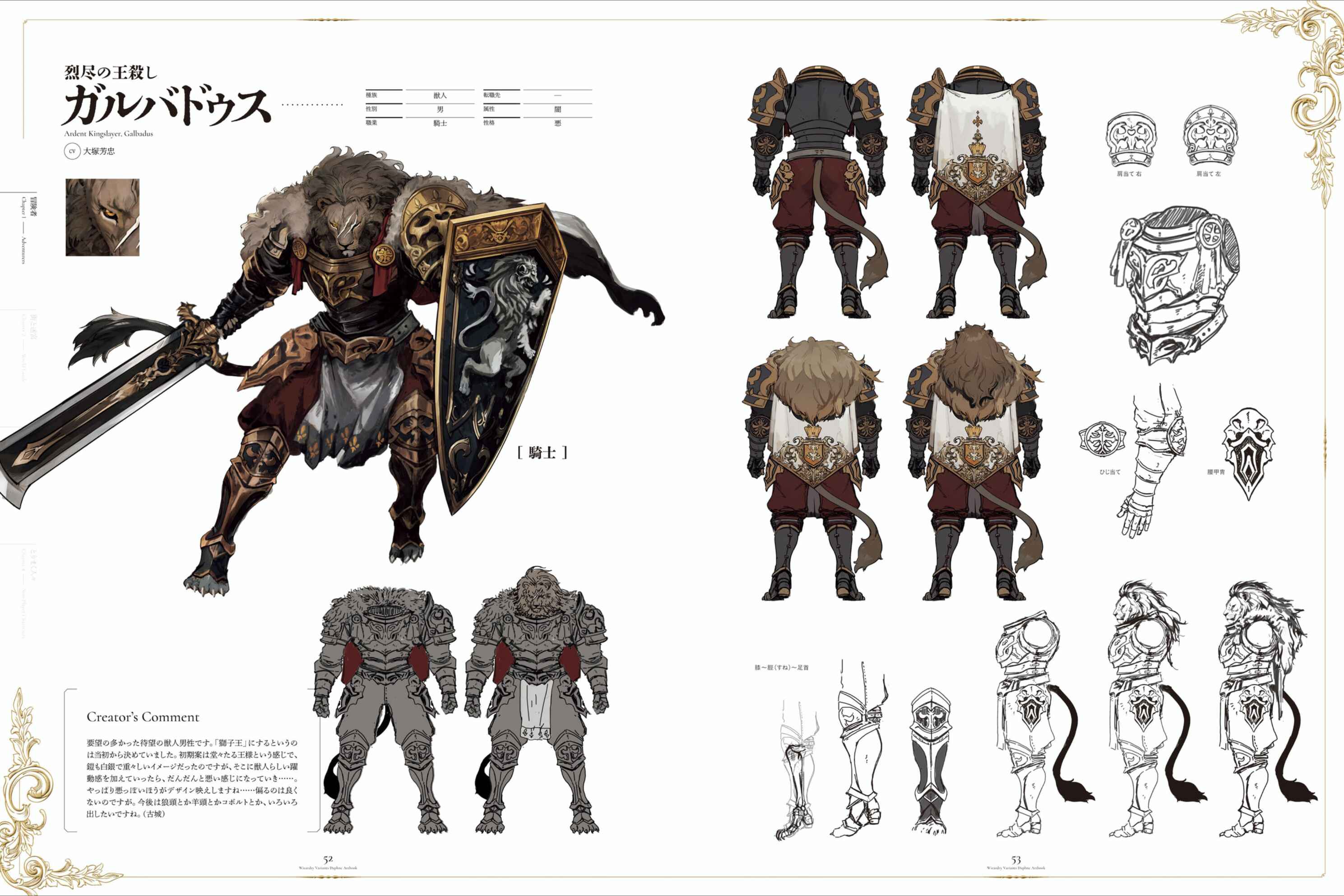 GalbadusThis is the long-awaited male beastman that many people have requested. I decided from the beginning that he would be a "Lion King." The initial idea was for him to look like a dignified king, with silver armor and a heavy image, but as I added the dynamic feel of a beastman, he gradually took on a more evil look... I think a more evil-looking design really stands out... although it's not good to be too biased. In the future, I'd like to create a variety of different types, such as a wolf head, a sheep head, or a kobold.Looks like male beastfolk are all going to be furries.
