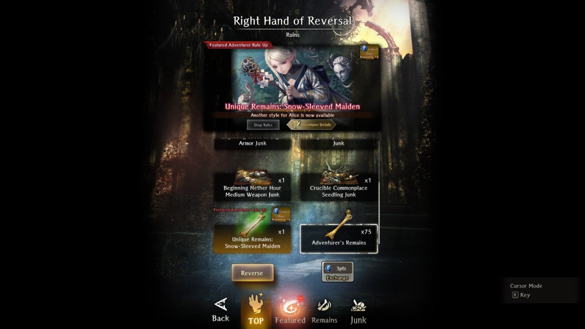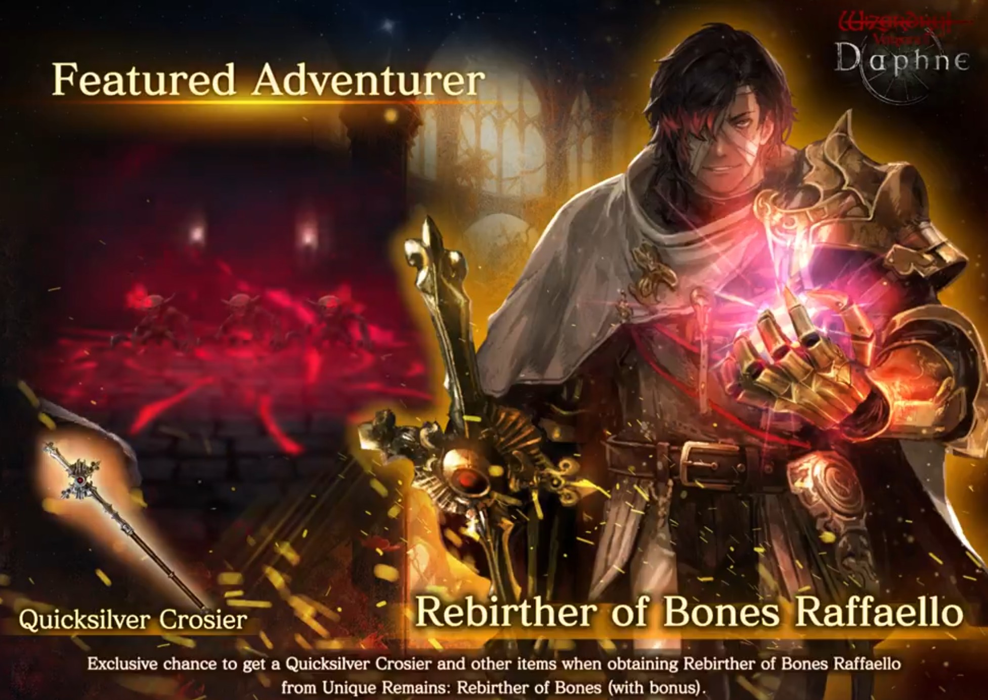 Don't let the thread die edition>Current Featured Adventurer Banners:Snow-Sleeved Maiden, Alice - Until 1/27Hunter Who Reads the Woods, Yrsa - Until 1/21>Current Reminiscence Adventurer Banners:Ardent Kingslayer Galbadus - Until 1/14Summer Yeka and Summer Chloe - Until 2/3>Wizardry Variants is available on Android and Steam:https://store.steampowered.com/app/2379740/Wizardry_Variants_Daphne/https://play.google.com/store/apps/details?id=jp.co.drecom.wizardry.daphne>Current Events/New Content:[Free Gems] 200 gem code in webstore - YJseQZA8dJ[New Abyss] Deepsnow Hinterlands[New Quest] Alabaster Wolf Pelt[Mission pass: Yrsa banner][Mission pass: Ossuary]FREE 800 Gems of Org (one time) + 50 per week on their official web currency store: store.wizardry.info[Japanese VPN only] ANOTHER FREE 800 Gems of Org (one time) + 50 per week: webstore.wizardry.info/product>Fanguides:https://wizardry.fasterthoughts.io/ - (EN)https://gamerch.com/wizardry-daphne/ - (JP)>General Information:https://rentry.org/x5xxitrz>Tavern/Camp choices:https://rentry.org/2gngvv2n>Friend Code:https://rentry.org/SavoryRisk>I.V checker and Other Stat Calculators:https://wizardry-daphne.mcwild.net/init_status/>In-depth Gacha Rates (ja/ko only)https://wizardry.info/daphne/gacha_rates/ja/characters.htmlhttps://wizardry.info/daphne/gacha_rates/ja/equipments.htmlPrevious thread: >>552964032