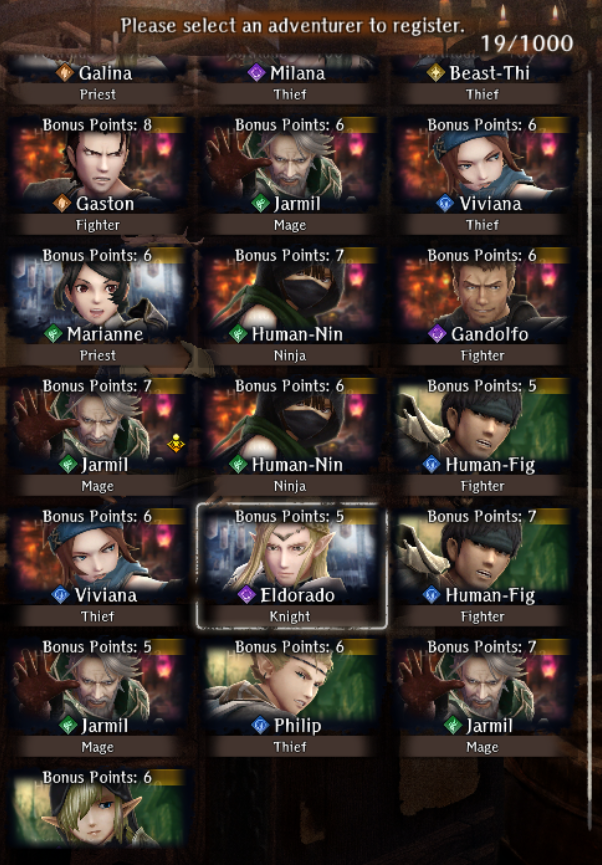 GillionHe is a helmeted adventurer, following Alex and Clarissa. However, unlike the previous two, he takes off his helmet in off-duty situations such as at bars, revealing his true face. He only wears it during battle. The helmet is somewhat intimidating, so I hope you enjoy the contrast with his true face. Surprisingly, there hasn't been a more modest and reliable type like this until now, so be sure to add him to your team and create a tough partyThat's the last Legendary in the book. Might do the same for the standard adventurers another time.