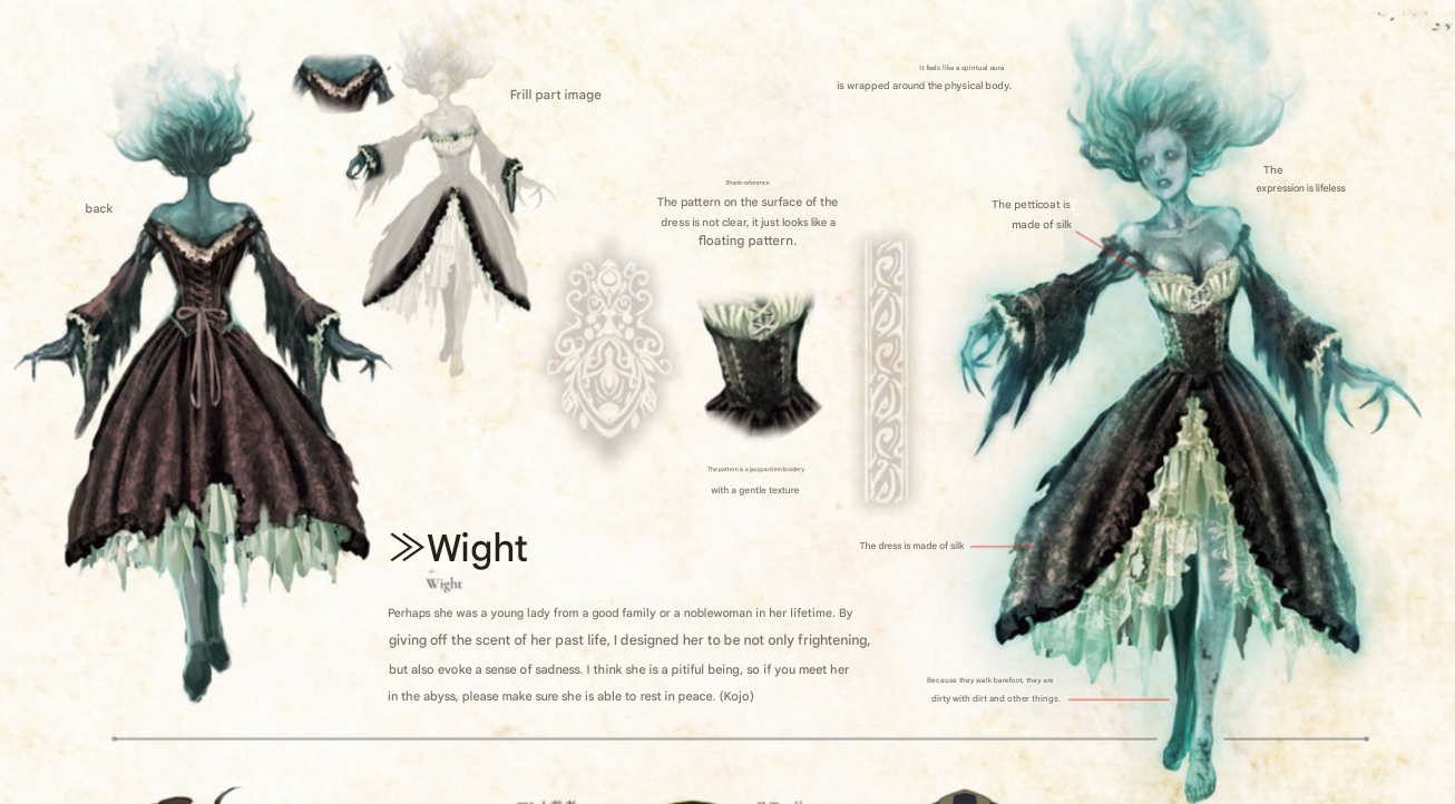 Gerard - This one is fucking funny, even the designer hates him.The design itself existed before the release, but was shelved as it was somewhat unattractive. At first, the silhouette and facial features were unsophisticated, but we added some flair and improved it with the hope of making it cool. The lightning sword is designed so that "the broken part of the sword is held together by lightning." I personally like the idea, but it's a shame that in the game it just looks like he's surrounded by lightning...
