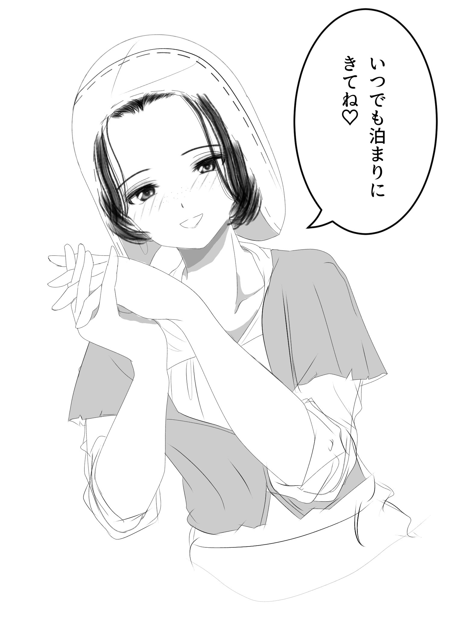 YekatarinaI created this with the image of a "widow in mourning clothes." The face is similar to Princess Purgrid's. I drew this while thinking about what the princess might look like when she grows up.In the first draft, she wasn't as close to her partner Calcium as she is now, with her face just floating above her shoulder, but there was a request for a closer fit, so the design was changed to one that is integrated with her current outfit. Calcium does some great acting in bars and camping, so I hope you'll check that out. As for the style change, since it's Obon, I created it with the image of a widow visiting the grave in memory of her late husband. The veil and hat make it look more like mourning attire. I think everyone was hoping for a swimsuit, but that doesn't fit in with the worldview... (Furushiro)