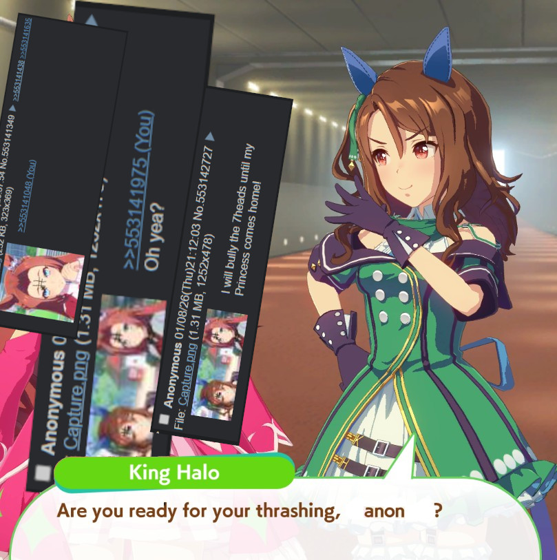 >>553144561I didn't know anything about her until I played her career. I definitely didn't expect her to become one of my favourite umas, but I found her story to be both funny and emotional and I enjoyed it so much that now I'll always use her in CMs.>Sadly past two times my metaslop aces have won instead of her.She didn't do well in the last CM for me, but that's because I struggle to build her well. Hopefully I can make a better version of her for Sagittarius...
