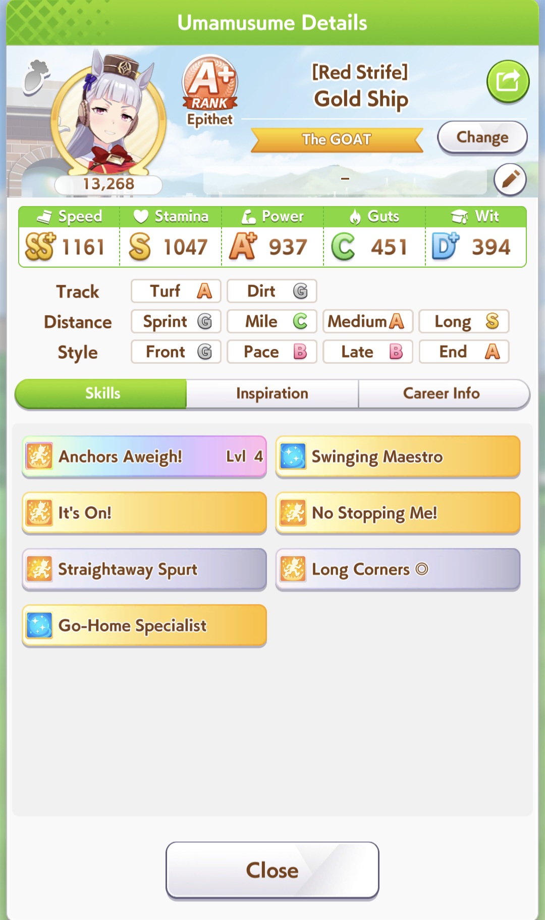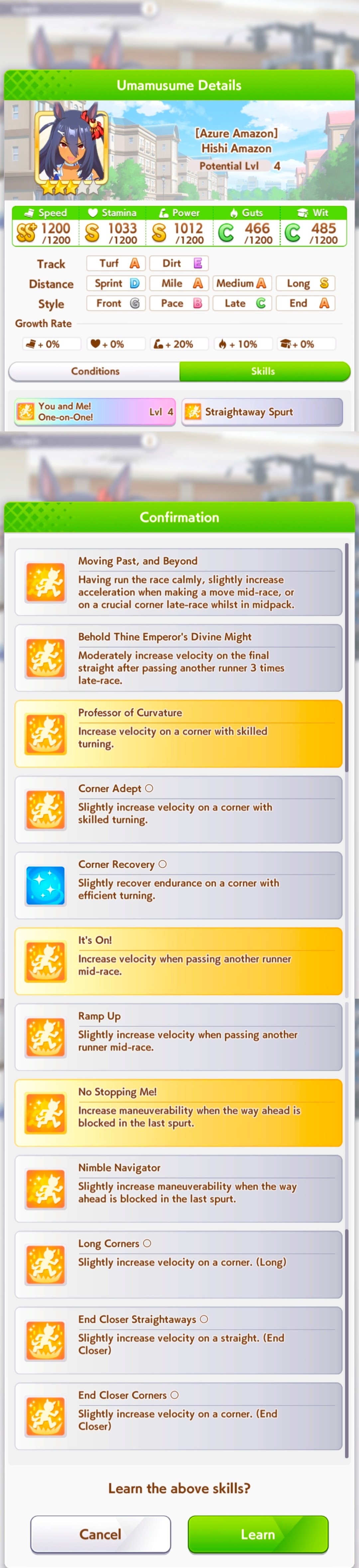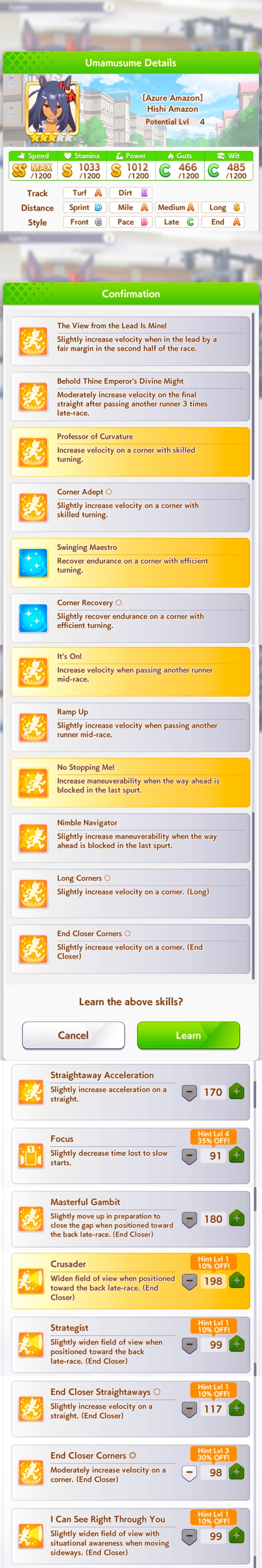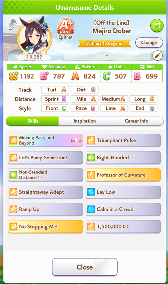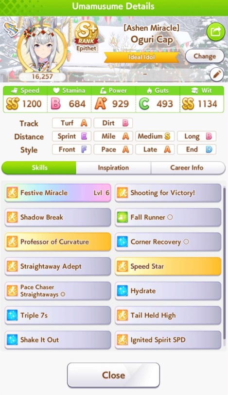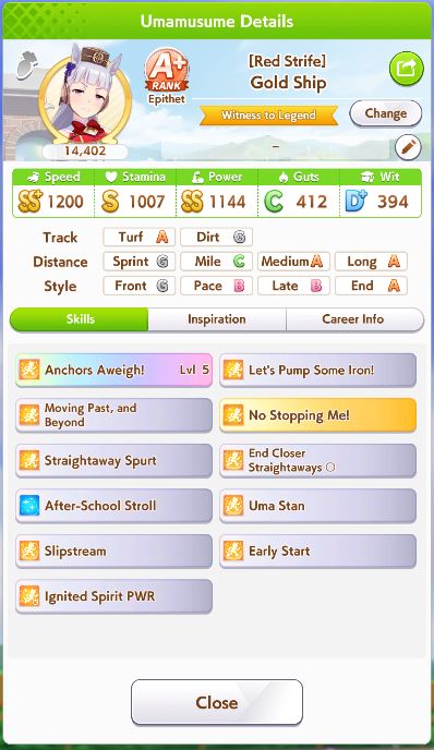>Perfect stats>Fast learner>Long S>Spurt inspiration never appears I’ve never hated training a style so much in my life. I’m so glad Tamamo has innate spurt so I don’t have to deal with this bullshit.