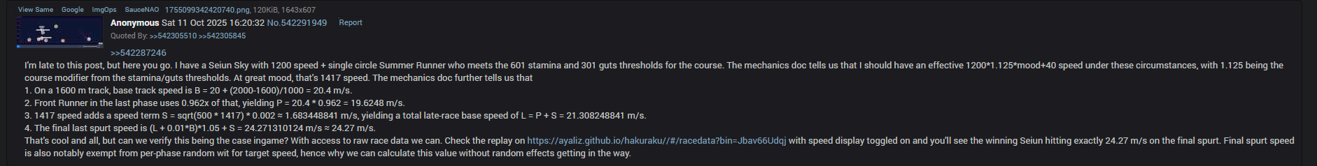 >>553166782>In that case the umalator isn't doing that correctlyI haven't read the code but I think you're rightI lowered the stamina a lot, added tons of recoveries and forced them to proc in the middle of late-race and I'm pretty sure that umalator isn't doing the recalculation