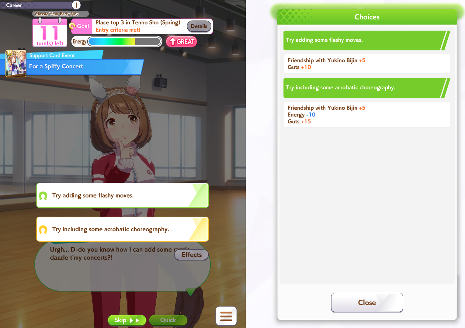 >doing a parent run with orange mambo>jobs every race with superior stats>swap to pace>starts winning everything