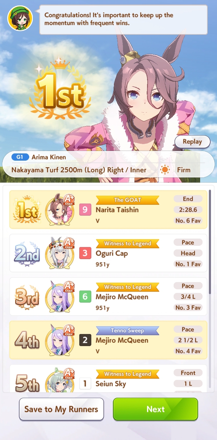 I'm just reusing my old libra umas + x oguri for the next cm. I'm now training for the sprint CM, and from initial room matches, taishin is legit for sprint cm wtf!!