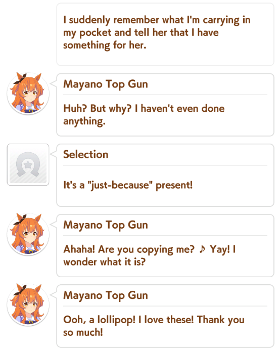 >>553141789She was my most awaited uma.>I'm doomed to forever run her in CMs as one of my acesSame. Sadly past two times my metaslop aces have won instead of her. But it will happen sooner or later.