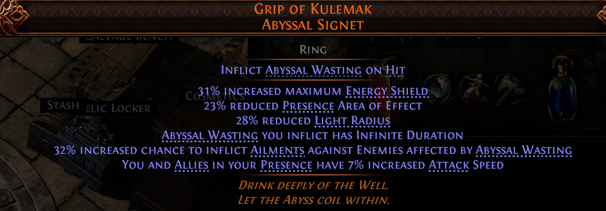 >>553150832block with abyss, omen+best exalt you can muster. might not be worth it this late in the league though