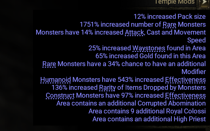 >run maps with this many mofidiers>make less than these temple snake abominationsi pray to god they fix temples by 0.5 because this shit is ridiculous