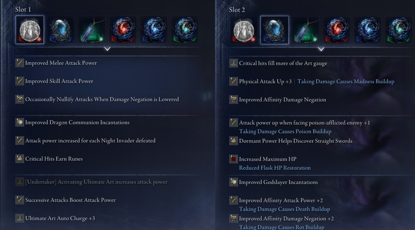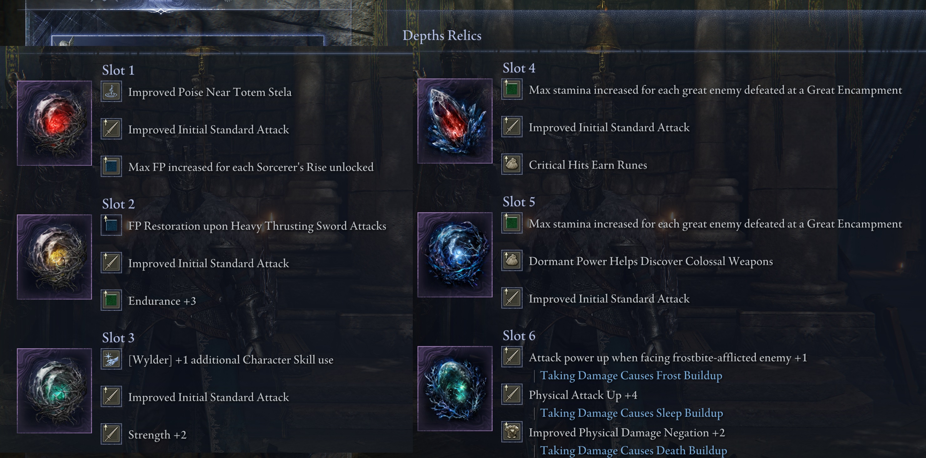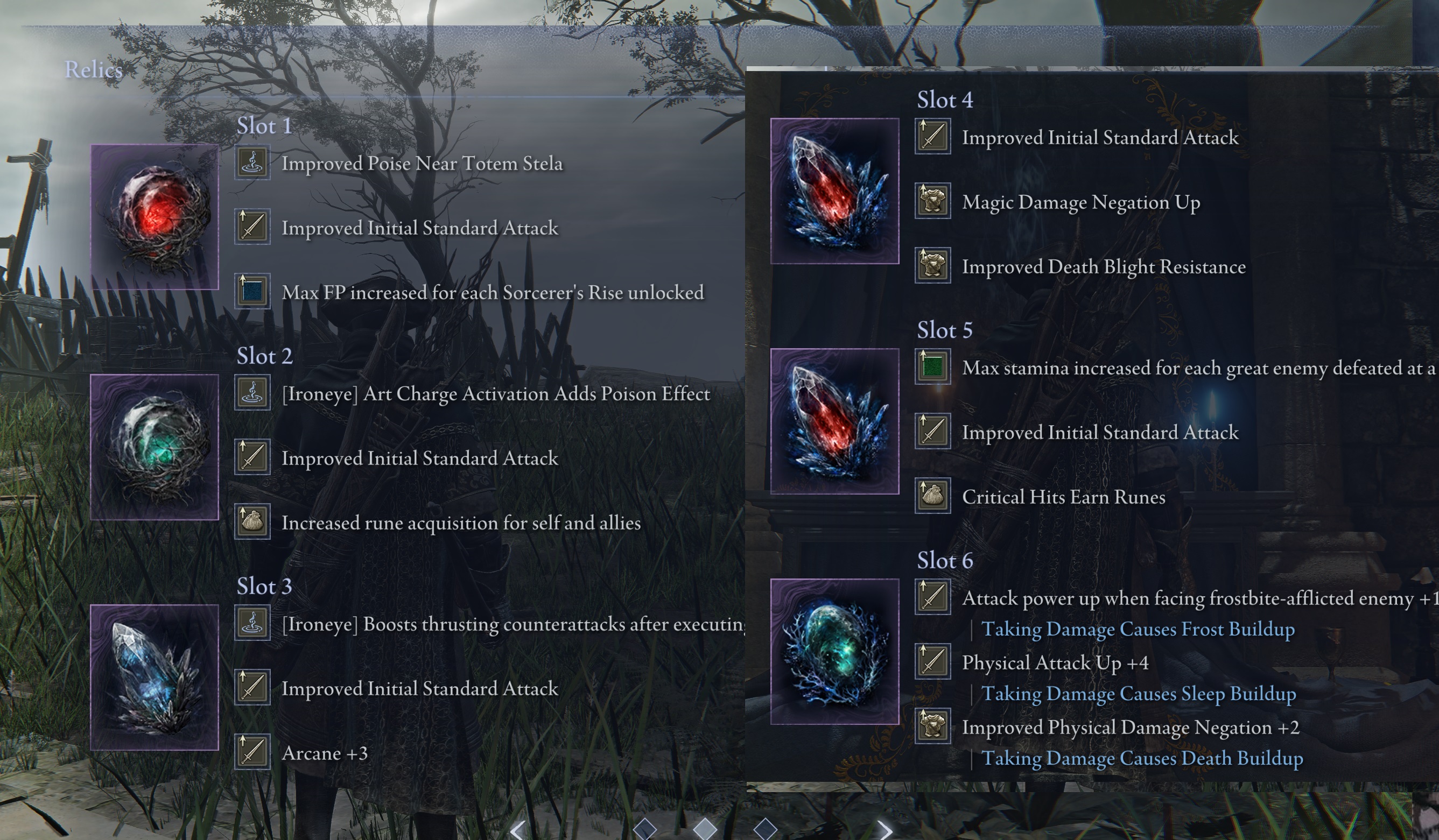 >>553239406You're only thinking of meta builds. I want relics that would enable fun off meta builds. Relics that would actually make some of the respec relics fun to use. I also thought about a madness build that could use the Libra relics for infinite FP with a depth relic that increases attack with nearby madness and madness build-up on damage but the odds getting that are incredibly low, also, there's no change starting spell to any of the madness ones.