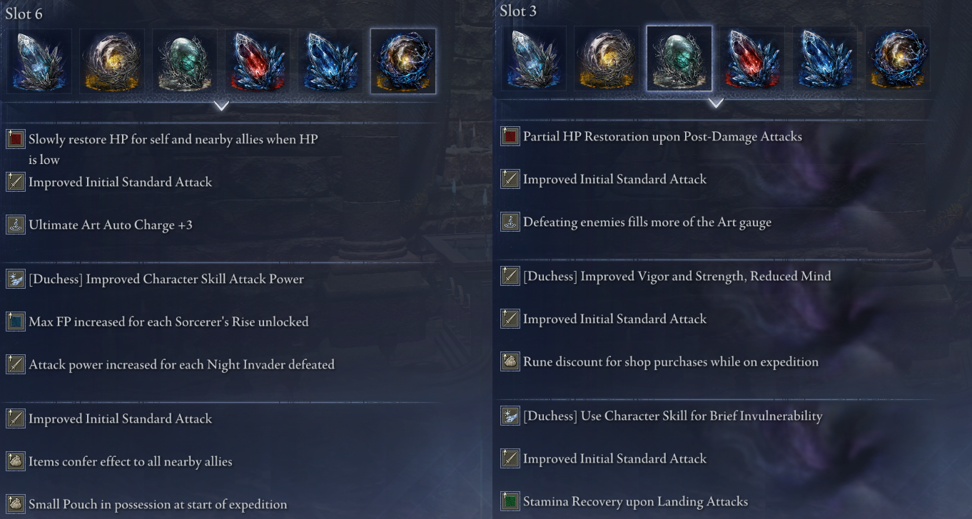 >>553239087The issue was releasing the game piecemeal with incomplete chalices and relics. Launching the game in that state practically begged people to cheat to circumvent it. Now with full chalices and all the boss/shop relics in the game the need to cheat feels much less pronounced. If you cheat now what are you cheating? A single non-deep relic with ninvader on it? Thats nothing compared to people cheating all 6 relics because the meta was literally unfinished for months. I'd imagine someone cheating has enough good enough deep relics now that they really only need that 3rd non-deep relic to be perfect. You aren't going to be making things to replace your balancer or necklace or earring if you don't want to look blatant, those are best in slots already.