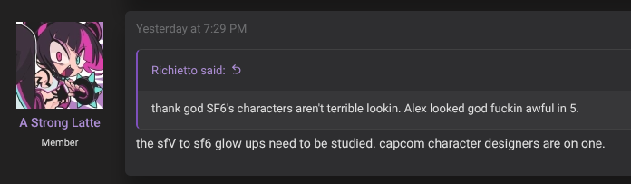 idom said SF6 removed everything that made a fighting game a fighting game, like execution, left-right mixups, blocking, zoners, and other character archetypes. They took everything people who didn’t play fighting games hated about fighting games and made SF6, which is why it’s successful with people who would never play any other fighting games. Thoughts?