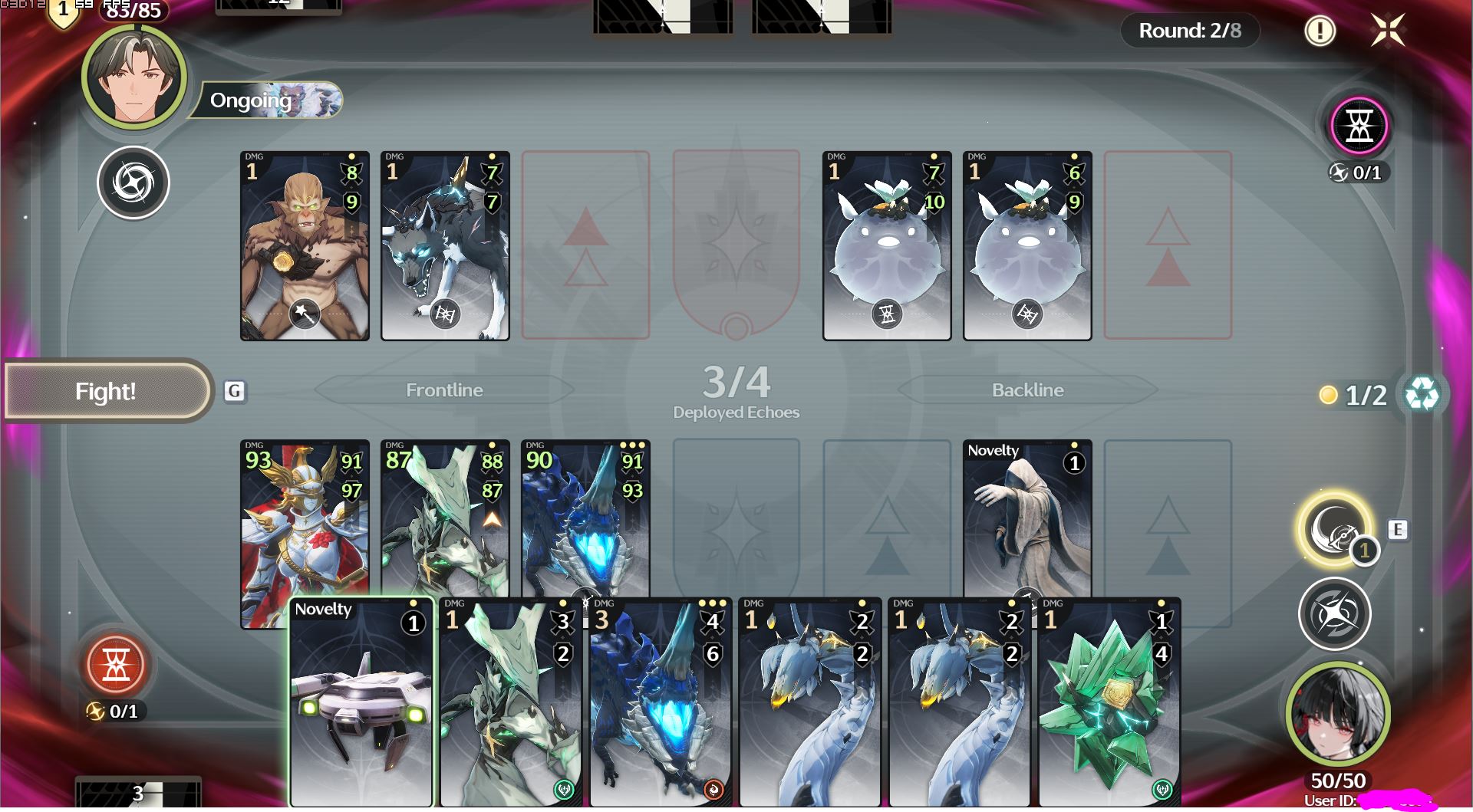 >>553208671placing cards on field or activating a card consumes 1 energyDMG value on top left is how much it does to the opponent after it is left on field during won rounds and value on uppermost right is how much it does on opposing echo, value below that is how tanky it is. You need to prioritize energy and card economy, the more energy you got, the more actions you can do.