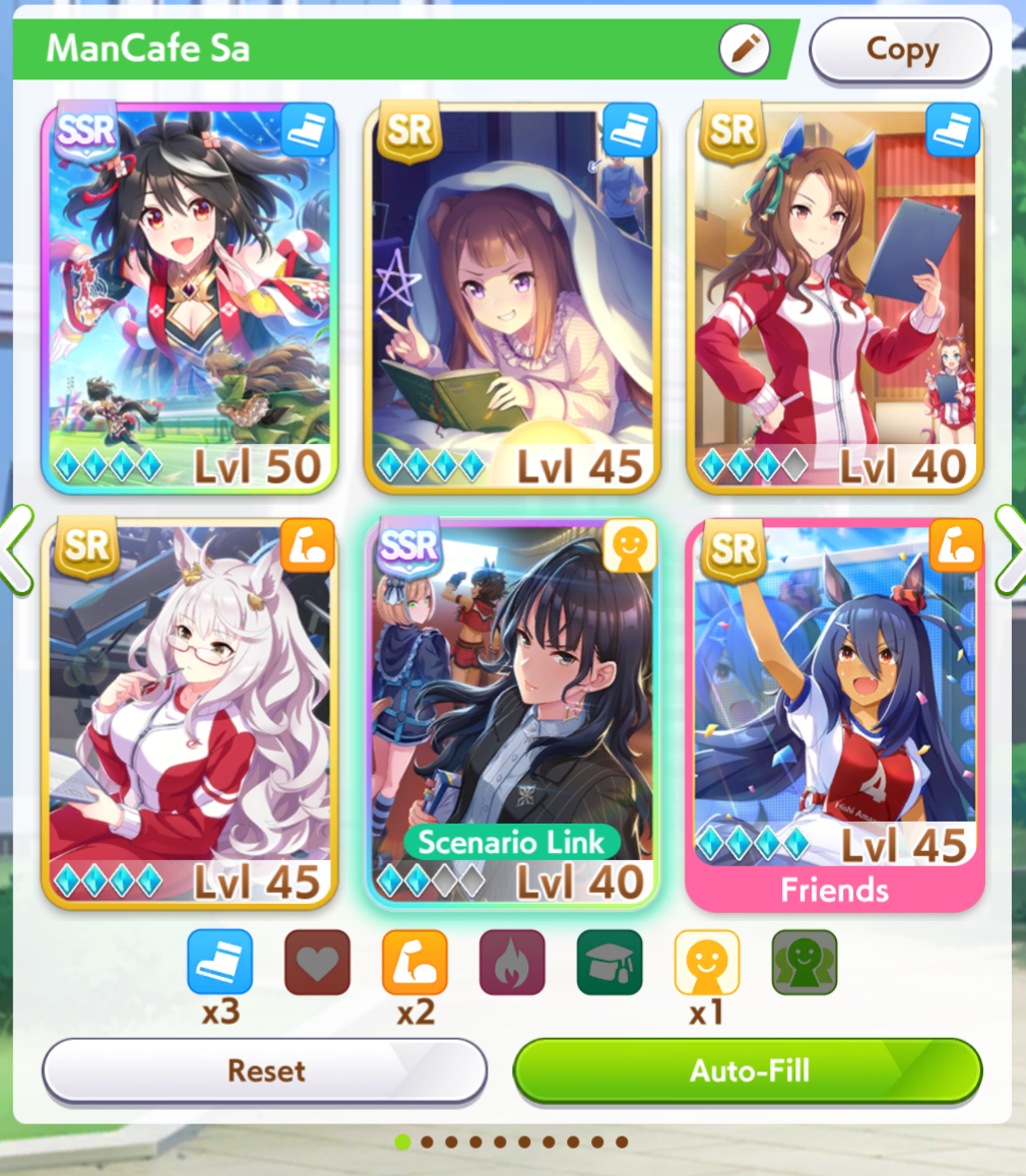 >>553194709The only other speed option I have is Taishin and Eishin, both of which are also at 3LB. I have no other SSR cards at more than 0LBAnd Cafe has 30% stam gain and those two power cards have stam bonus. Is that not a good idea?