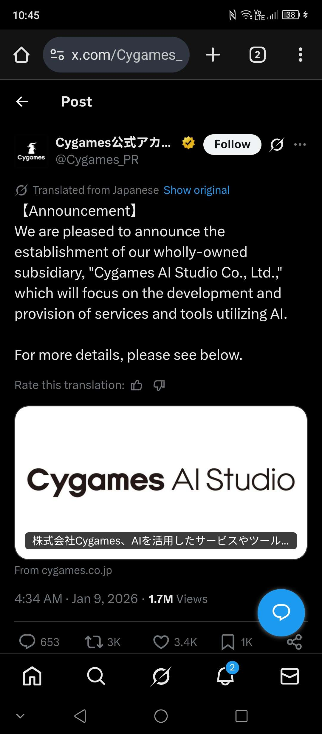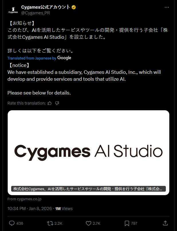 >cygames announces AI studio>same thing every other game studio does>only talks about in-house programming tools>no mention of generative AI>JP responses don't care or say cool>predictable english-only player responses>AIIIIIIIIEEEEEEEEEEEEE>click their accounts>comments defending localizers>timeline of hoyoslop (confirmed to use genAI for art and voices)Welp, looks like they won the localization debate. As if Cygames is gonna listen to western complaints now.