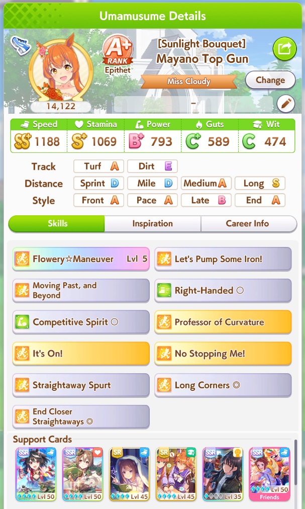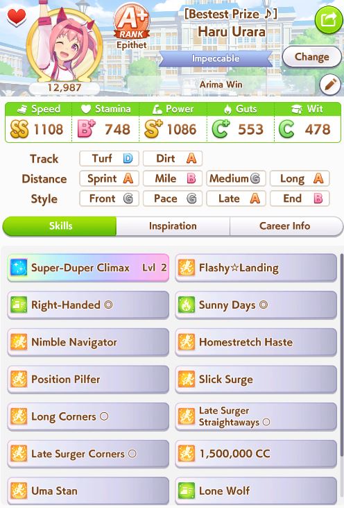 >>553195162Honestly it's a bit of everything. I can't get a single stat between speed stam and power to S.I got speed to S ONCE in like 4 runs, but power and stam were never higher than 850