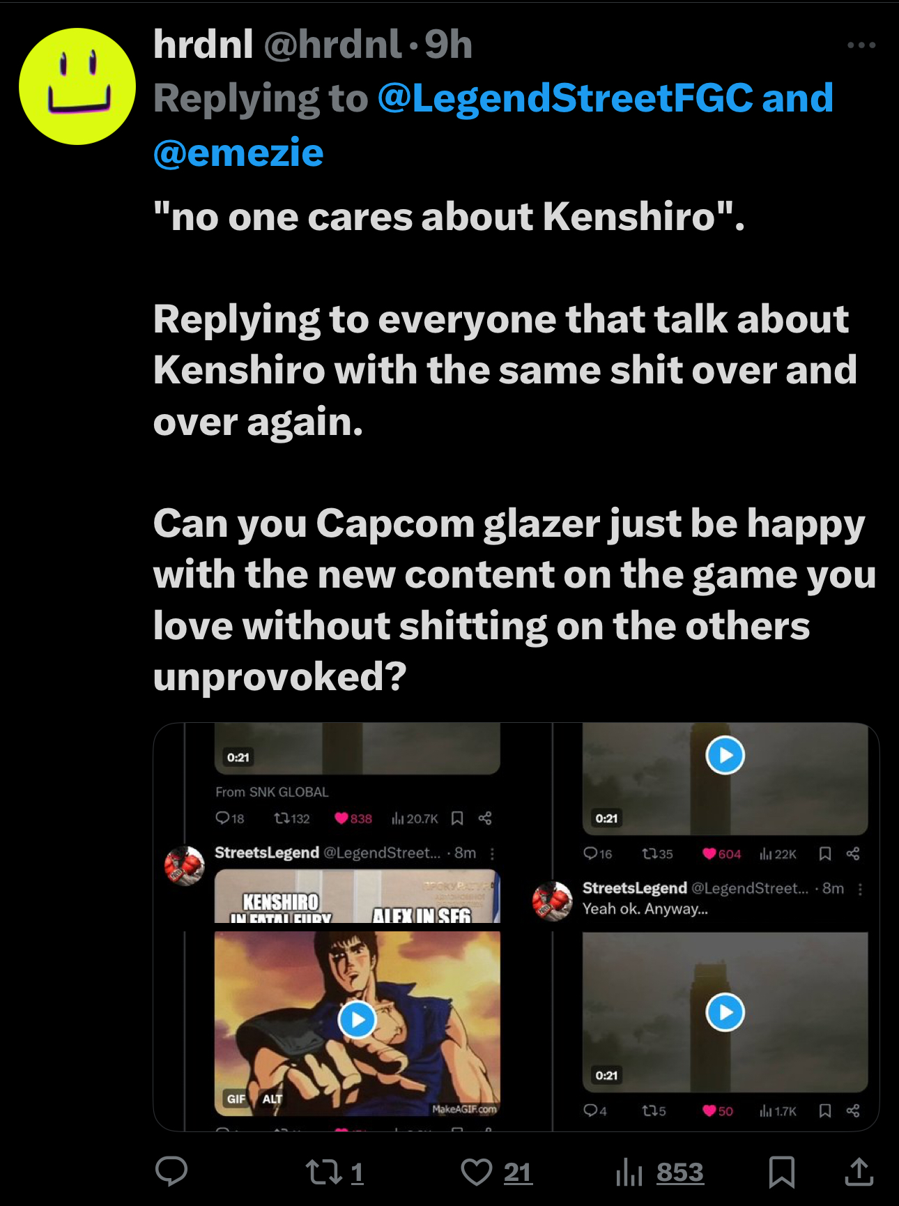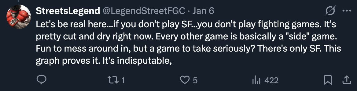 https://x.com/LegendStreetFGC/with_replies capcuck mental illness on full display