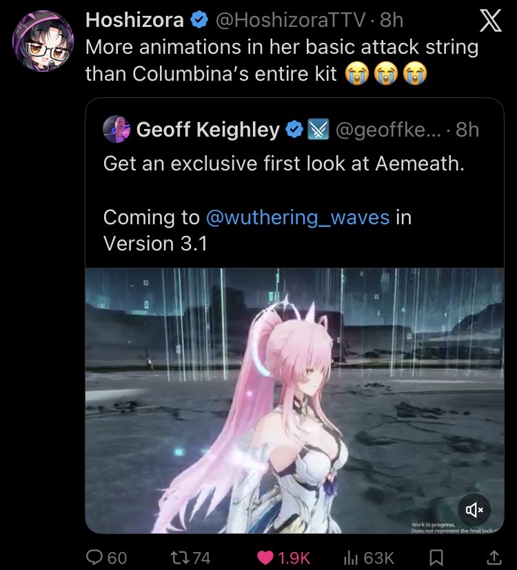 >>553211568Actually funny.This shit is why I fucking hate the Void Hunters in ZZZ. They have fuck all animations and a billion VFX particles.But sovlful characters like Zhao and Banyue have unique, rich, fluid and very pleasing animations.