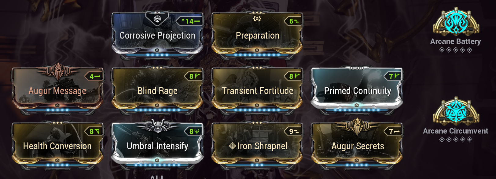 As for Continuity and PG, yeah, those are always good to have and you should absolutely get them, but they actually aren't as critical as they once were because Arcane Energize can effectively replace PG very frequently and Archon Continuity can do the same for Primed Continuity.