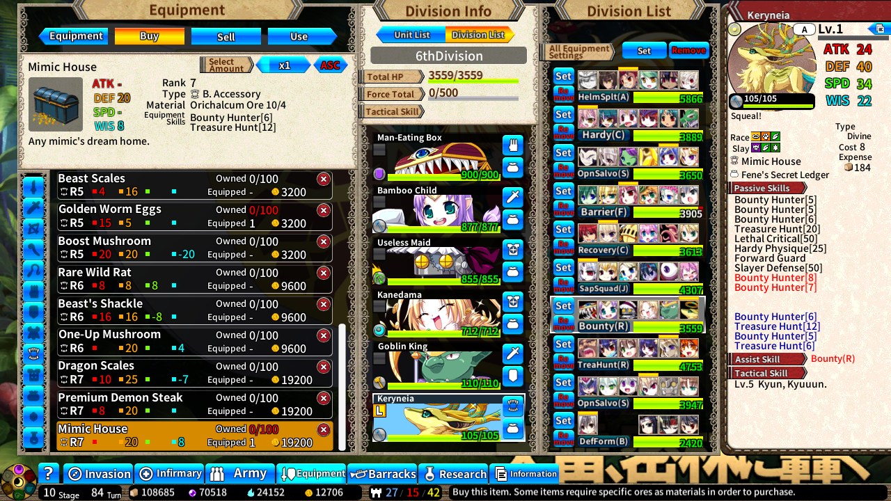 >>553253285>For Bounty and Treasure Hunting teams is it okay to kill all but 1 enemy with a proper team then finish off the random last unit alive with Bounty + TH assist or TH + Bounty assist?Yes, the game even recommends this. you get the same item reward if it's 1 unit with 1 HP or 6 units with full HP.Kills matter for XP and merits but not items.