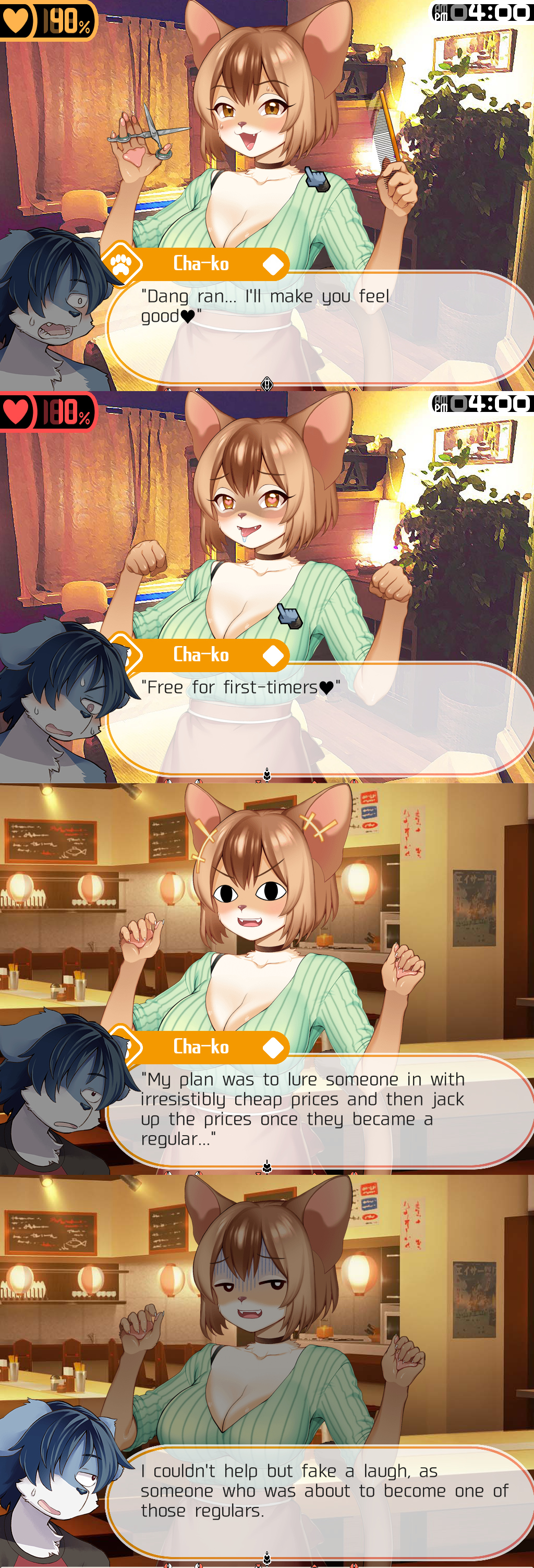 Cute chinese cat swindler I like how some characters get a diary entry which gives you an epilogue with them. Haven't gotten one for the step mom or sister yet but I assume one of their game overs will give me it.