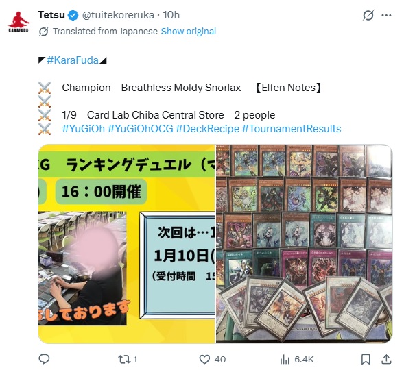 #6717 - supportPrevious: >>553093813>SimulatorsAutomated:●EDOPro (PC/Android): https://projectignis.github.io/download.html●Master Duel (Multi-plat): https://store.steampowered.com/app/1449850Manual:●Duelingbook (online): https://www.duelingbook.comTag: “/dng/” Password: “vidya”; on EDOPro, specify server.Genesys Duels: MR5, TCG, Custom Rules: No Links/Pend/EMZ/Pend Zones>LinksRulebook: https://www.yugioh-card.com/en/rulebook/Wiki: https://yugipedia.comProbability Calculator: https://yugioh.fyiStock Market: https://yugiohprices.comDatabase: https://www.db.yugioh-card.comMisc Info: https://www.formatlibrary.comBlog:https://yugiohblog.konami.com/Alt Format:https://www.yugioh-card.com/en/genesys/>BanlistsTCG: https://www.yugioh-card.com/eu/play/forbidden-and-limited-list/ (Oct 27/Next List: TBA)OCG: https://yu-gi-oh.jp/news_detail.php?page=details&id=2406 (Jan 1/Next List: April 1)>DecklistsOCG: https://roadoftheking.com https://tonamel.com/competitions?game=yugioh_ocgTCG: https://ygoprodeck.com/category/decks/tournament-meta-decks>NewsJP: https://yugioh-starlight.comEN: https://ygorganization.com>Upcoming SetsOCG:●THE CHRONICLES DECK - Charmer (Jan 24)●Blazing Dominion (Jan 24)●Deck Build Pack: Cosmic Rivals (Feb 26)●LIMIT OVER COLLECTION -THE PROTAGONISTS- (Feb 28)●LIMIT OVER COLLECTION -THE RIVALS- (Mar 20)●Chaos Origin (Apr 25)TCG:●Burst Protocol (Jan 23)●THE CHRONICLES DECK - Spirit Charmers (Jan 23)●Maze of Muertos (Feb 20)●Legendary Modern Decks 2026 (Mar 13)●Rarity Collection 5 (Apr 10)>Events●/dng/ League S1 (Week 19, Jan 8-Jan 15):https://challonge.com/dngleagueseason1
