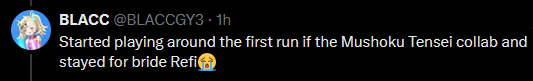I saw the writing on the wall since Teresse's interaction. It was way too tame compared to Nebris and such. Then came the year of reruns, Refi censorship, removing character ages, etc. Around that time I stopped going for rank 10 FH and guild raids and top 100 PvP, eventually only doing dailies, then not even logging in.I talked about this in the thread and you guys told me that I didn't play and I was a troll. When in fact I was one of BD2's strongest soldiers from the days when we still got male banners.Shame on you all. You get what you deserve.