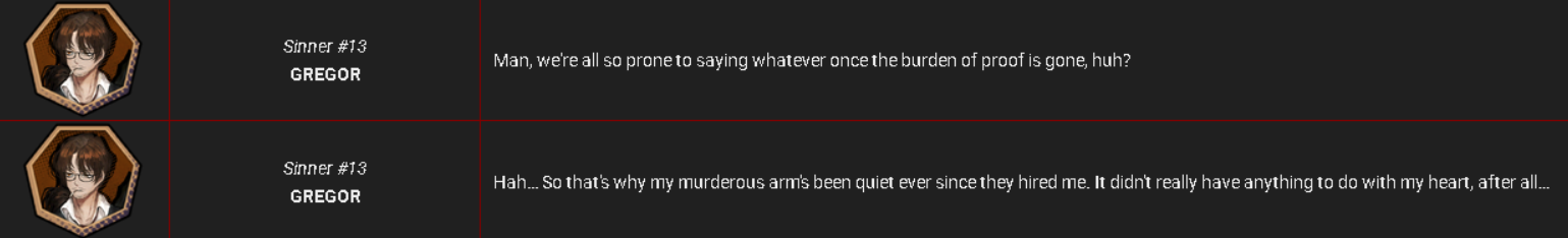 >>553253829Which Sinner has the best interraction in this Canto for you?, I love Yi Sang and Greg in part 2