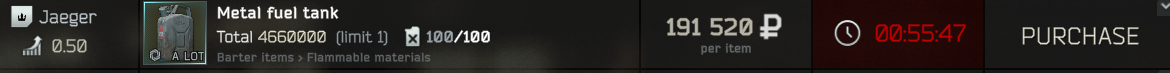 >>553279369everyone hiding in a corner once they find anything worth over 100k was not a good thing they should have just capped the amount you can sell on the flea per day. It shoul be like 50 things per day so resellers cant flip the market