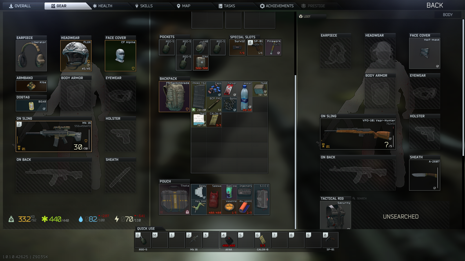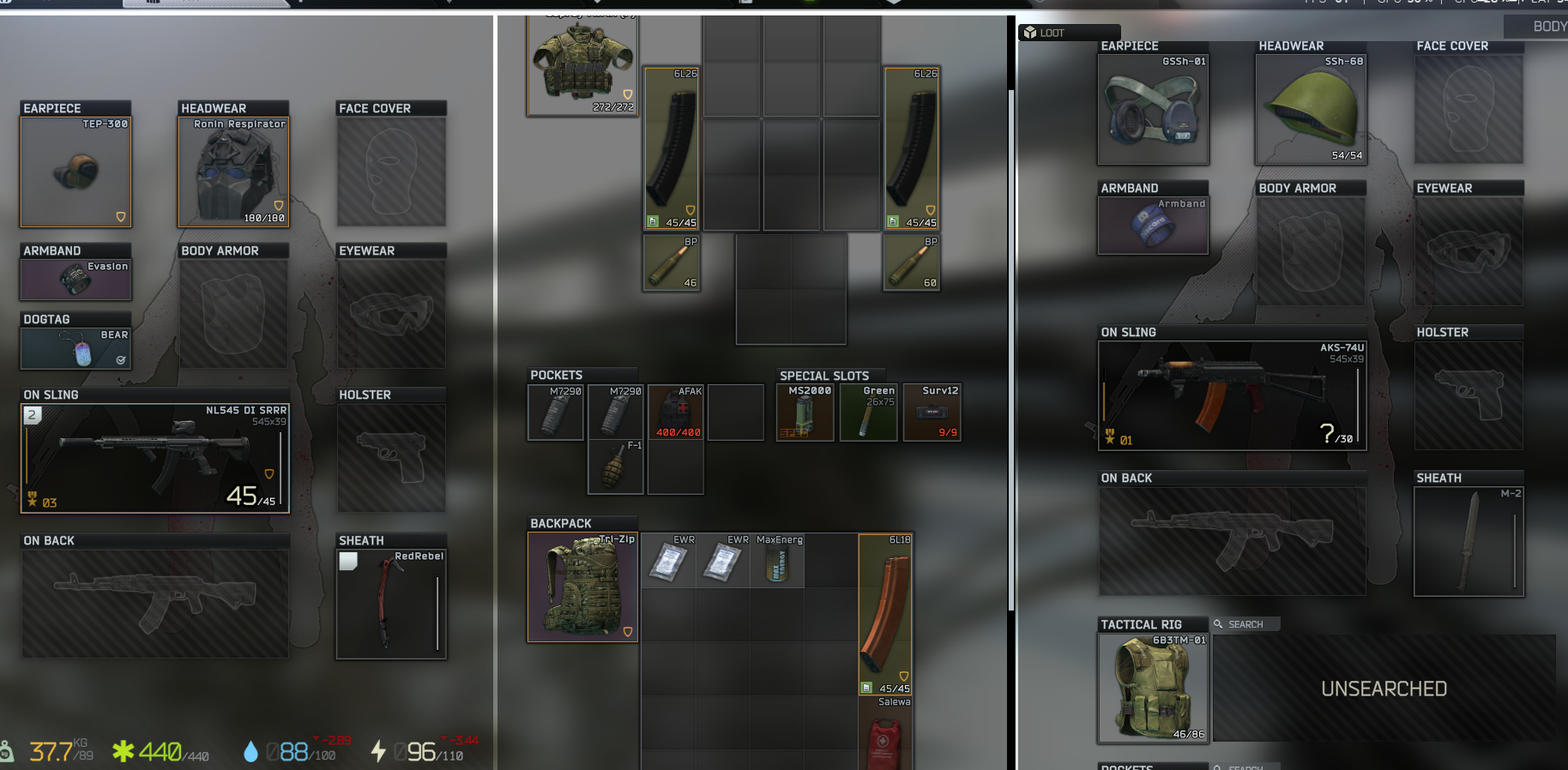finally survived interchange and did that fucking ragman quest where you have to visit all the stores. got into three fights with as many different players but disengaged effectively (i.e., ran away). as i was moving to emercom i was checking one of the tents and a pscav rolled through giving me all the sound cues. i had to rat him out and was rewarded for it (fuckin unreal haul from this dude honestly) but it was him or me.